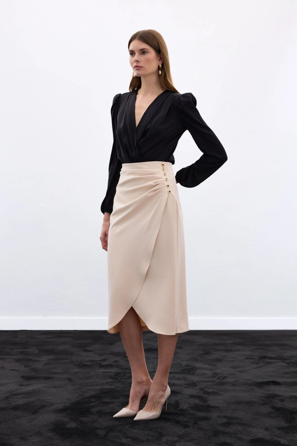 Aksesuar Kuşaklı Yırtmaçlı Etek - Siyah