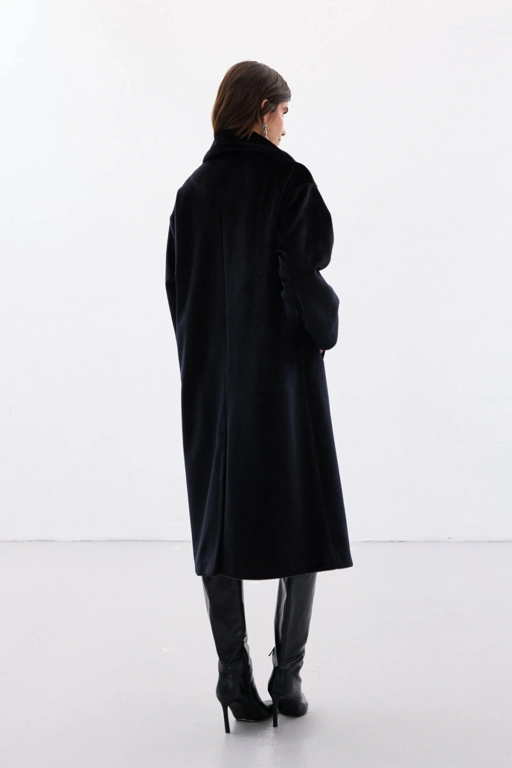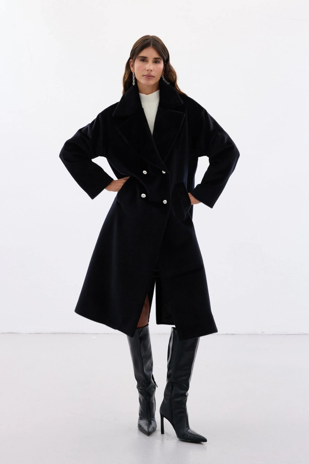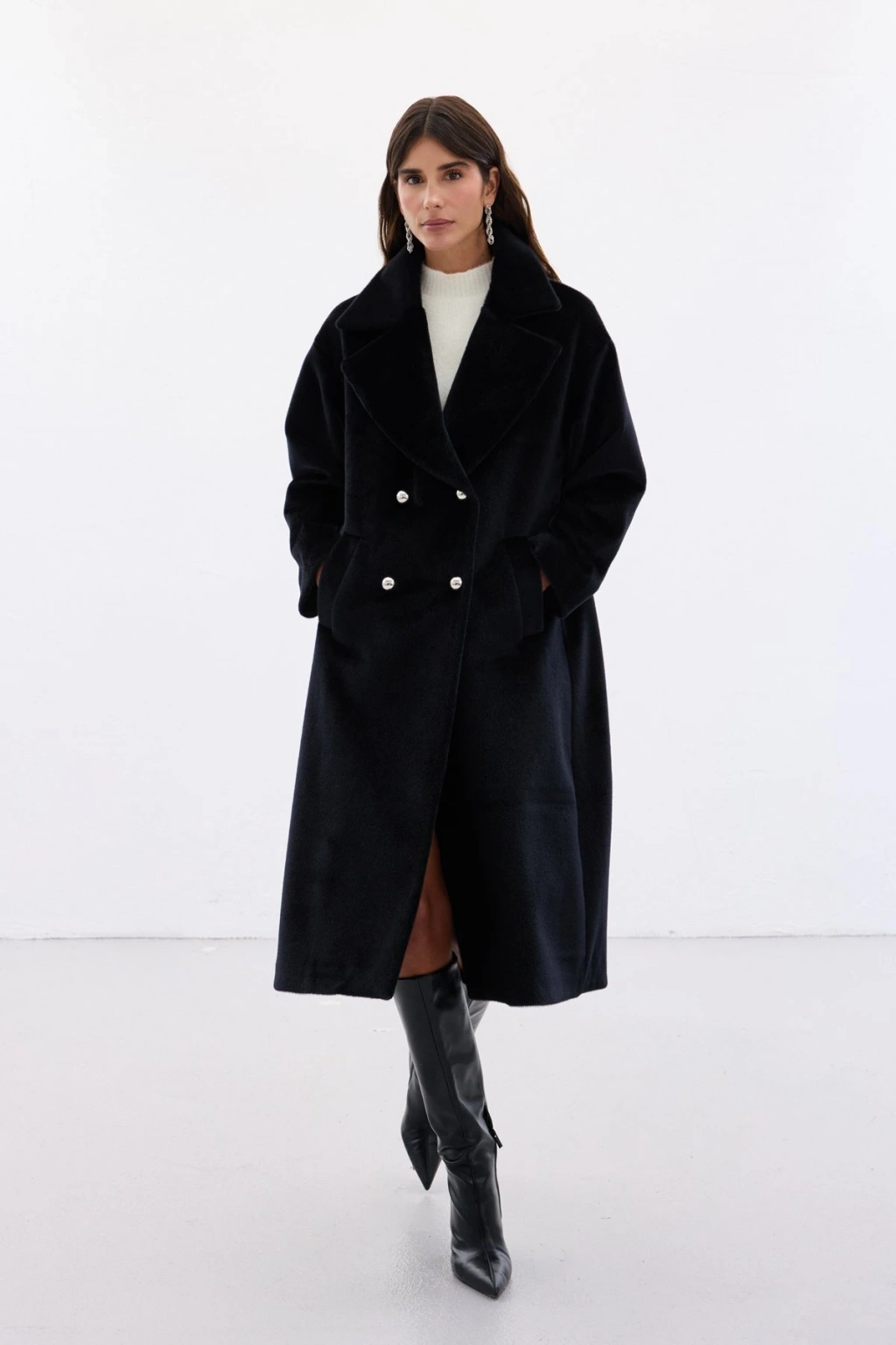 Düğme Detaylı Uzun Kaban - Siyah