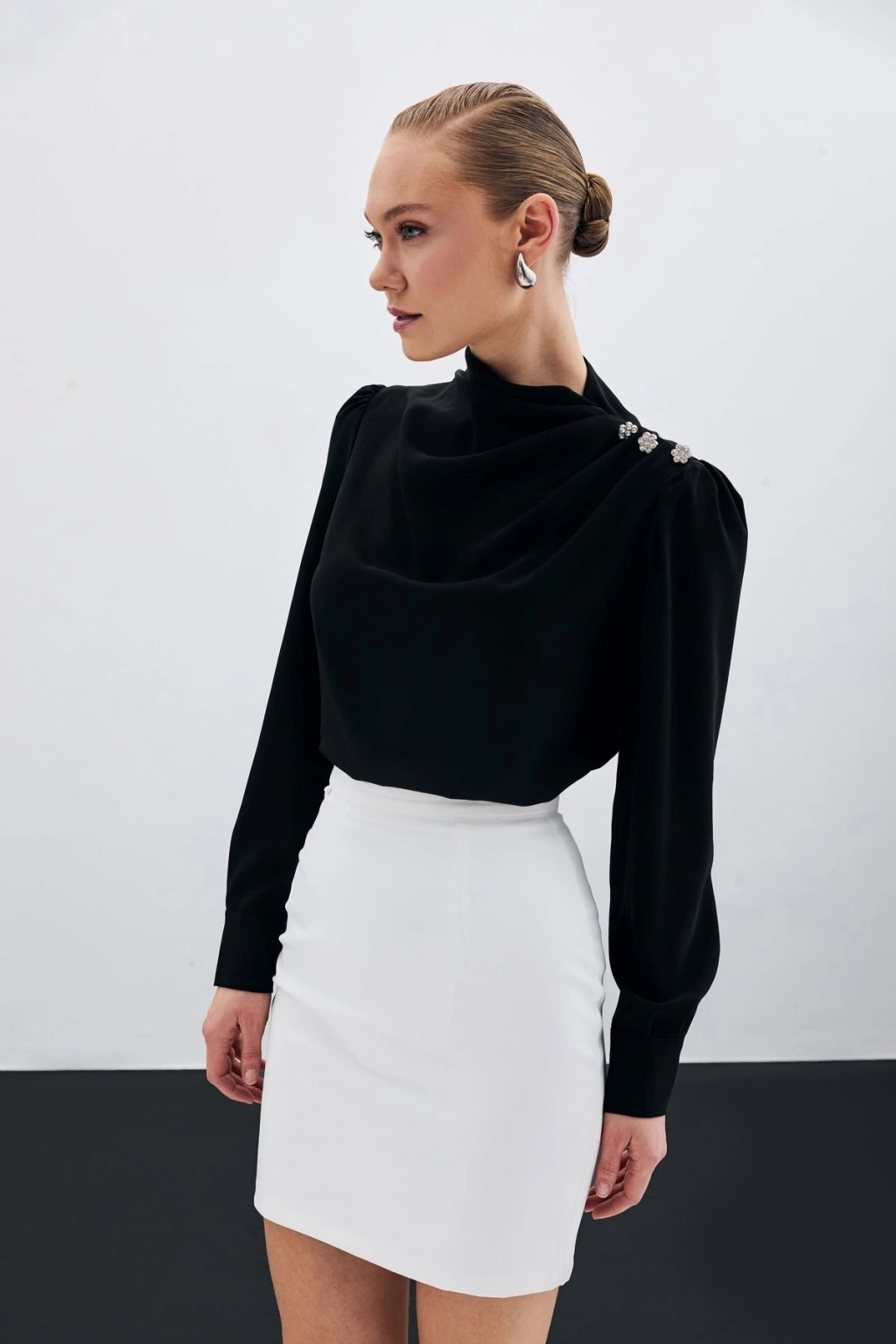 Aksesuarlı Salaş Bluz - Siyah