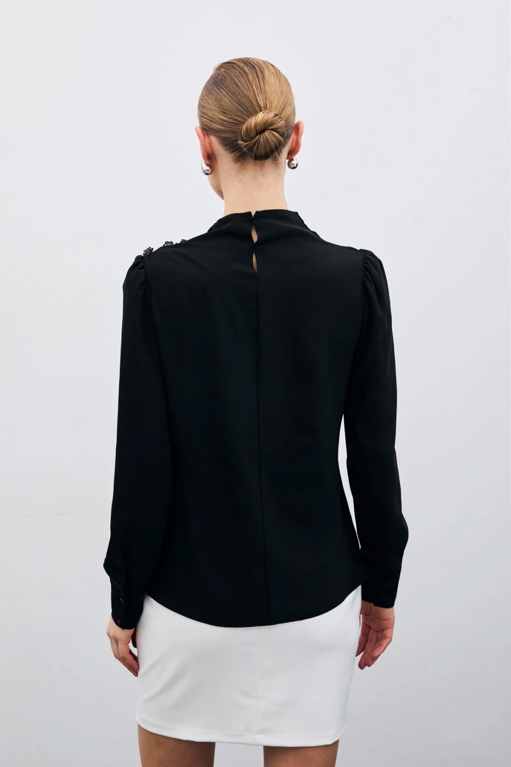 Düğmeleri Taş Detaylı Bluz - Siyah