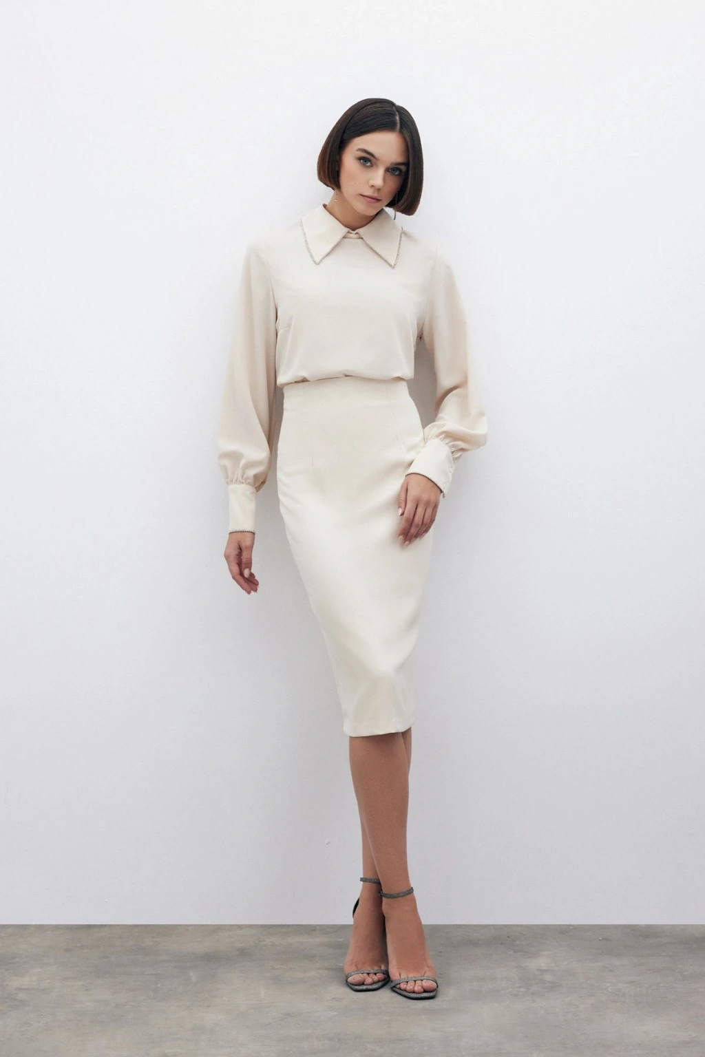 Gold Aksesuarlı Uzun Etek - Sax Mavi