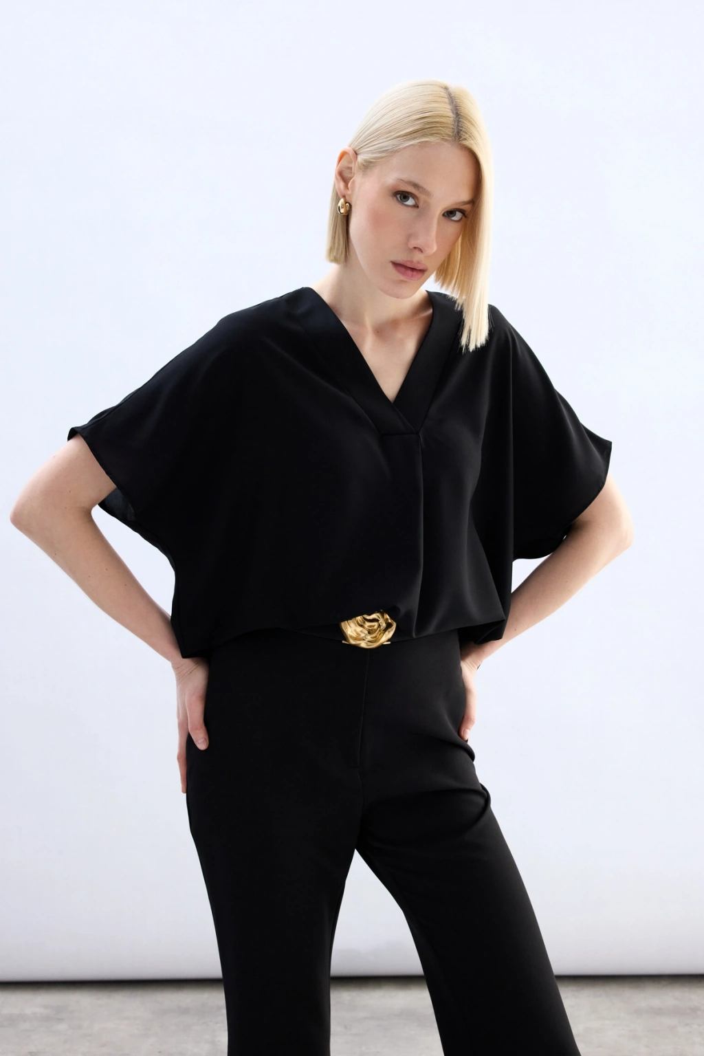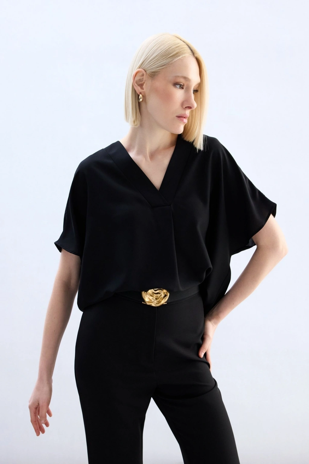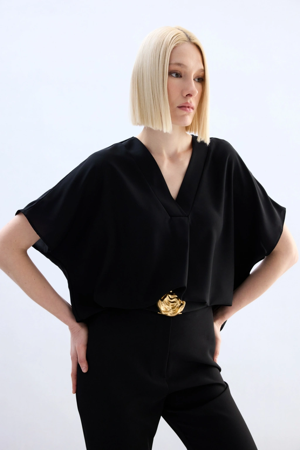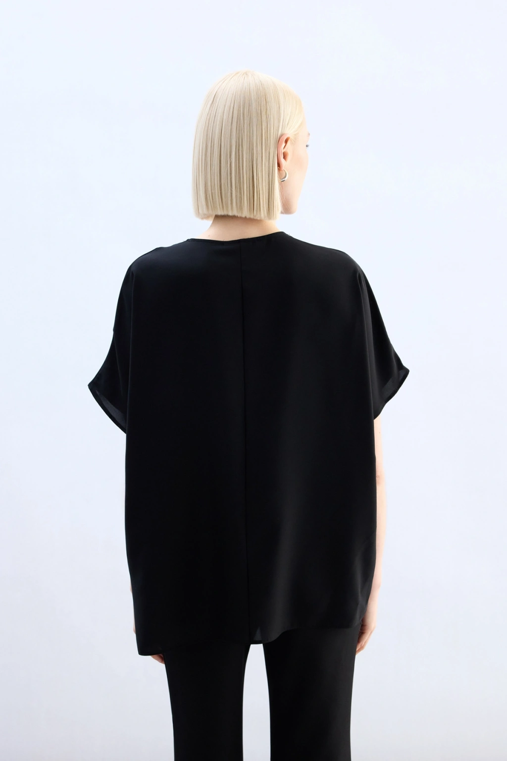 Geniş Kısa Kollu Bluz - Siyah