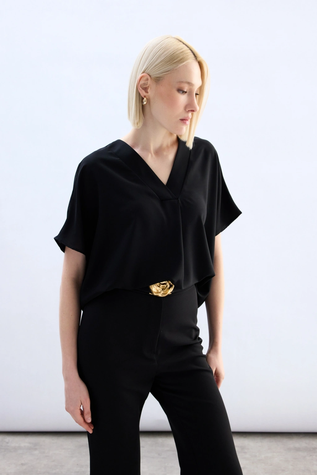 Degaje Yaka Bluz - Siyah