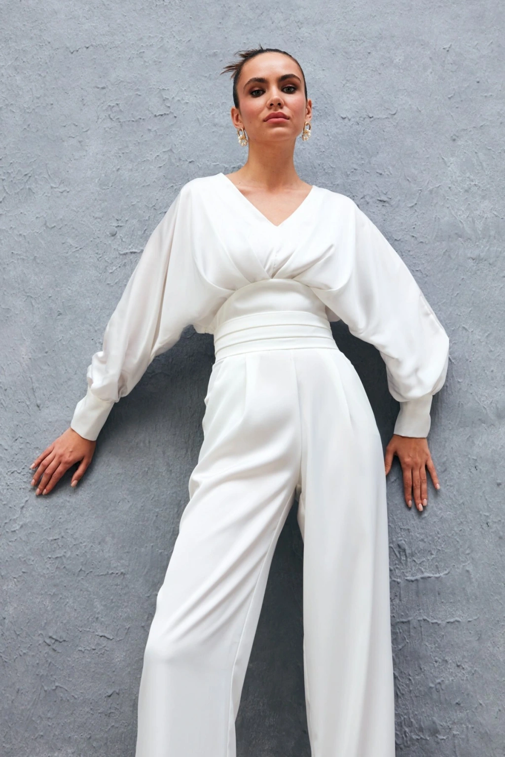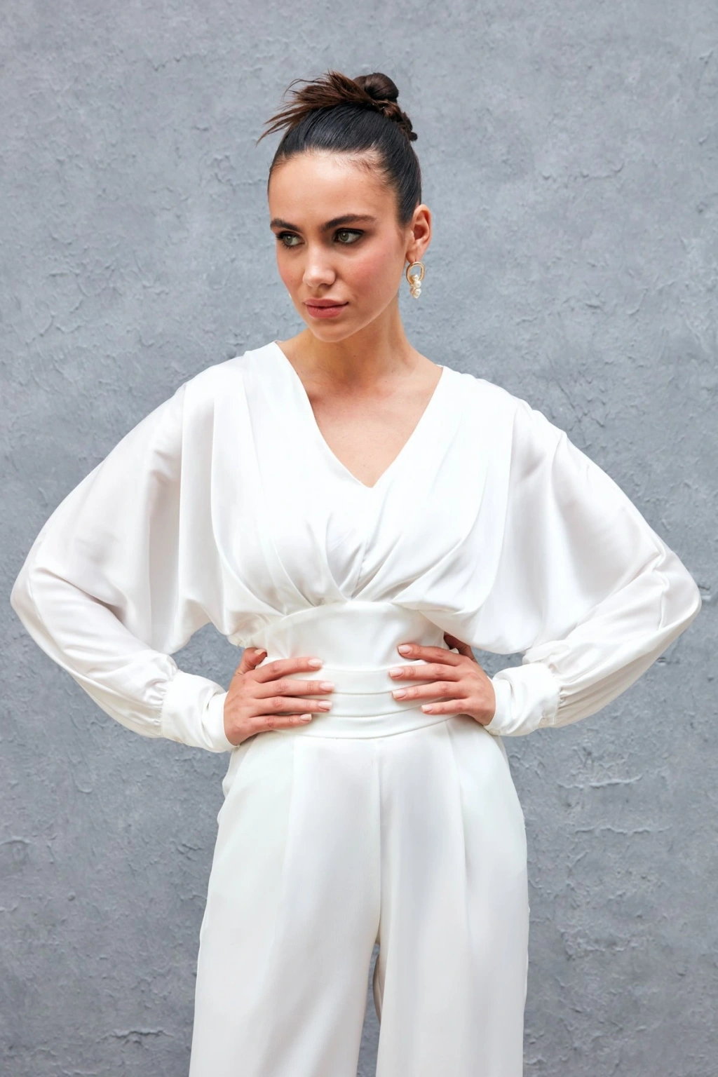 Aksesuar Detaylı Bodysuit Bluz - Ekru
