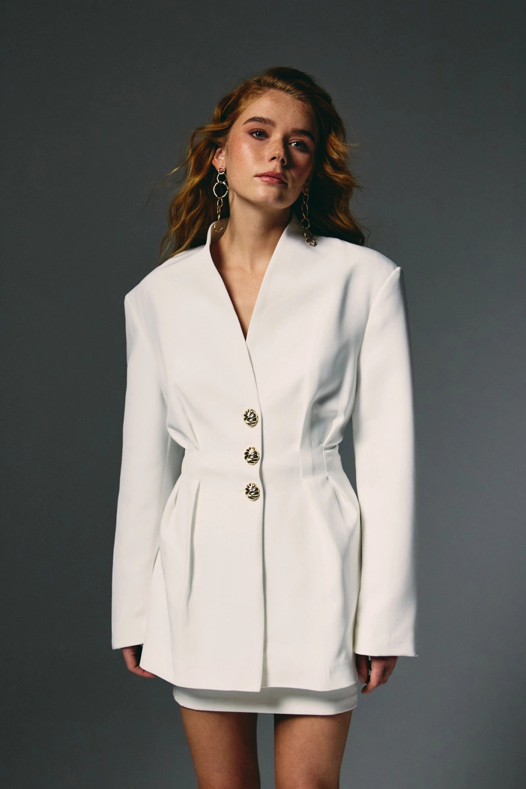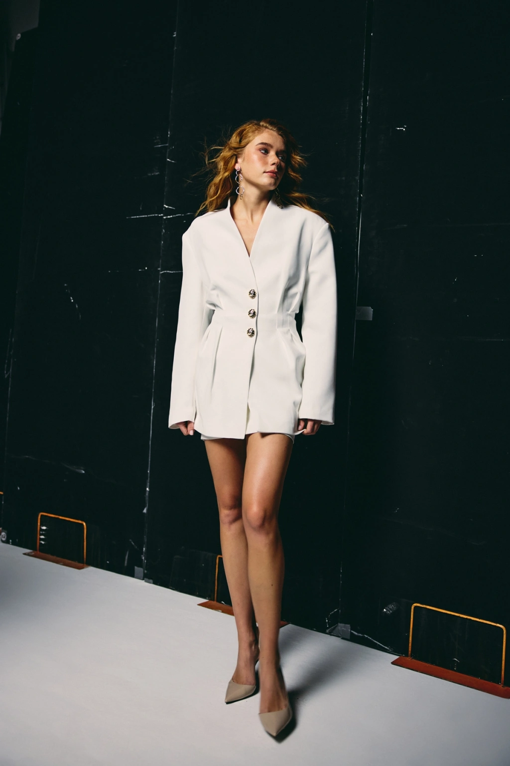 Kemer Aksesuarlı Yuvarlak Yaka Ceket Siyah