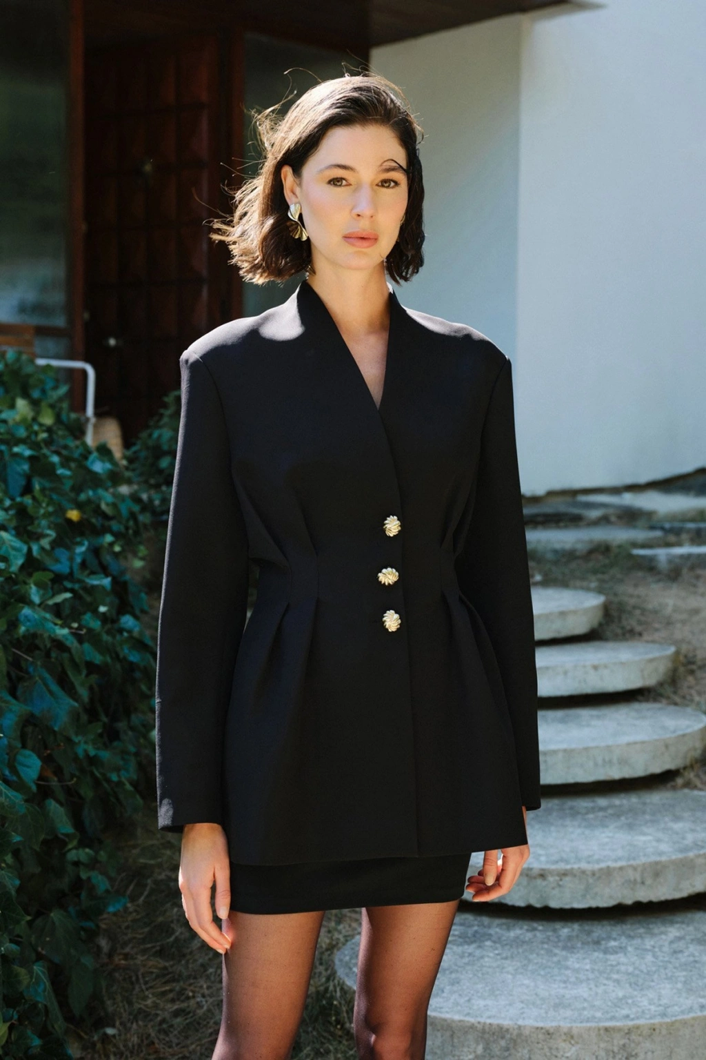 Düğmeli Kısa Ceket - Siyah