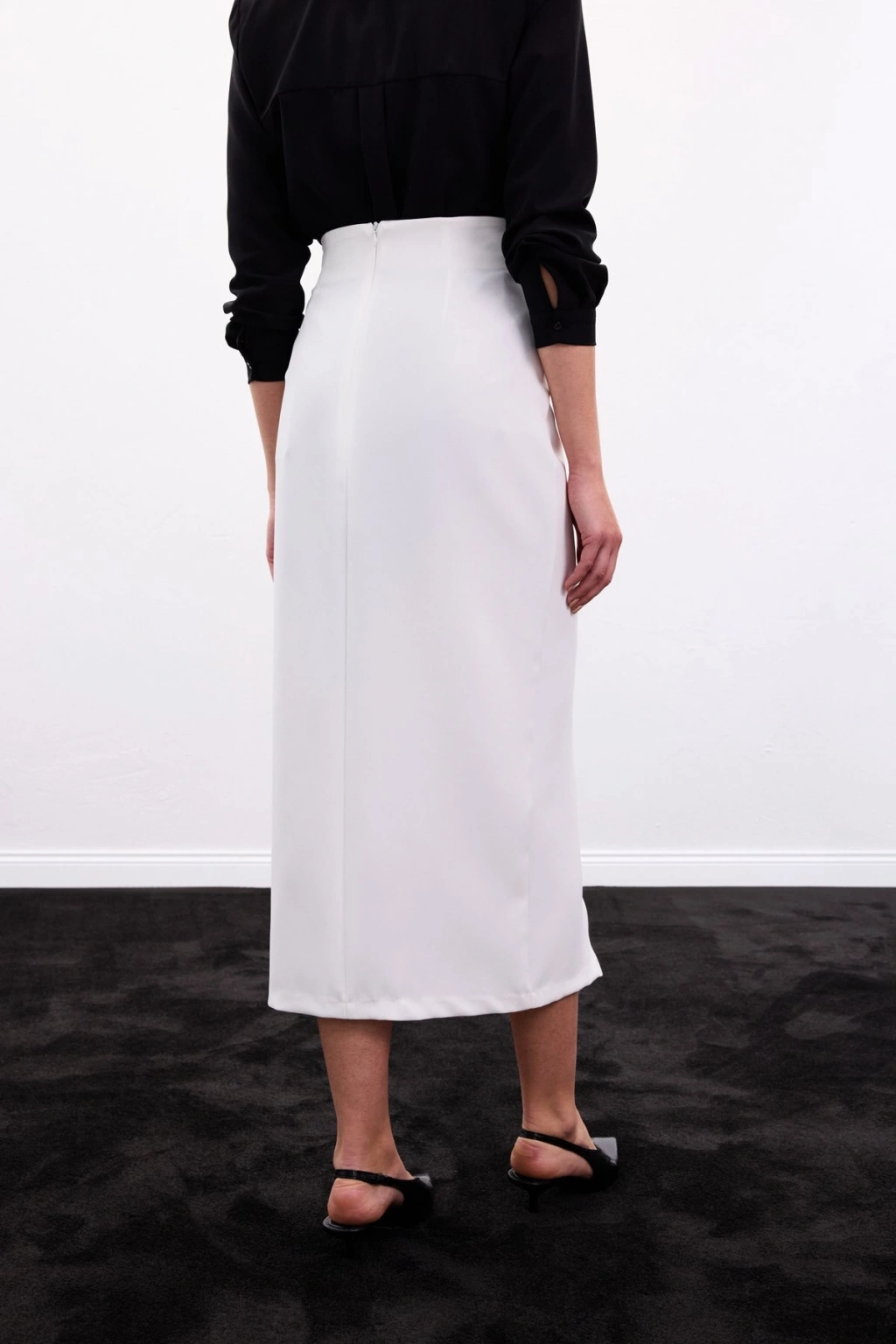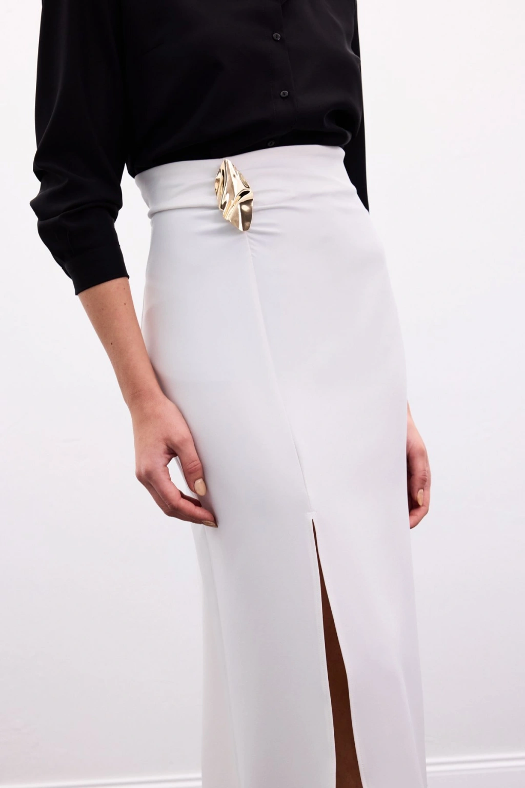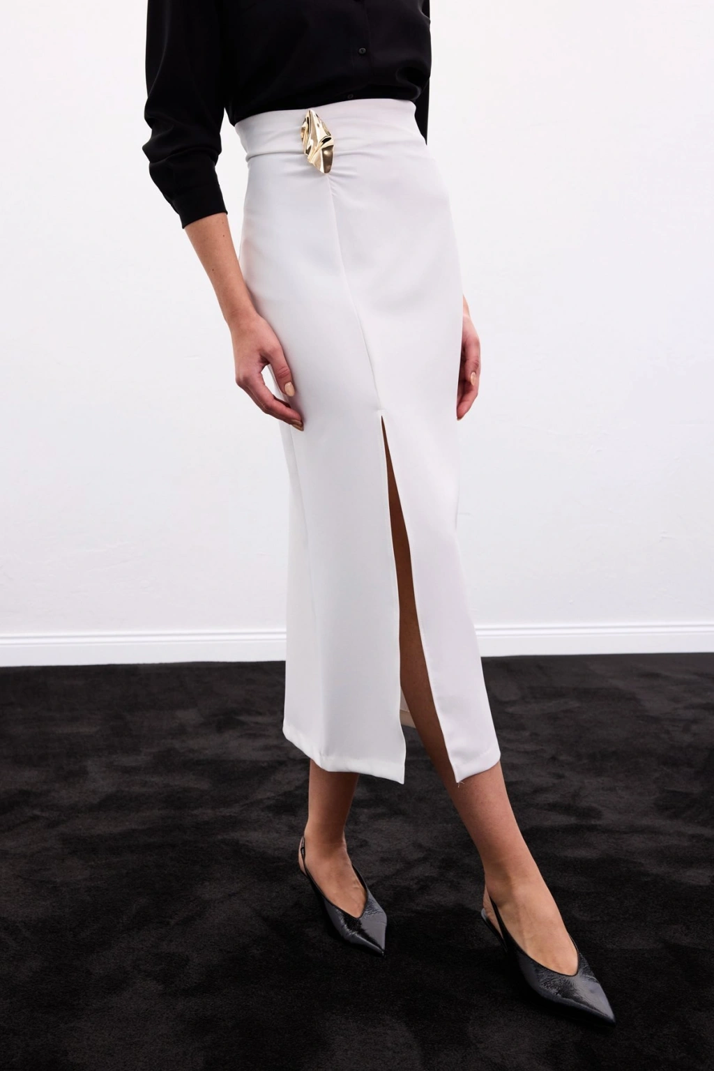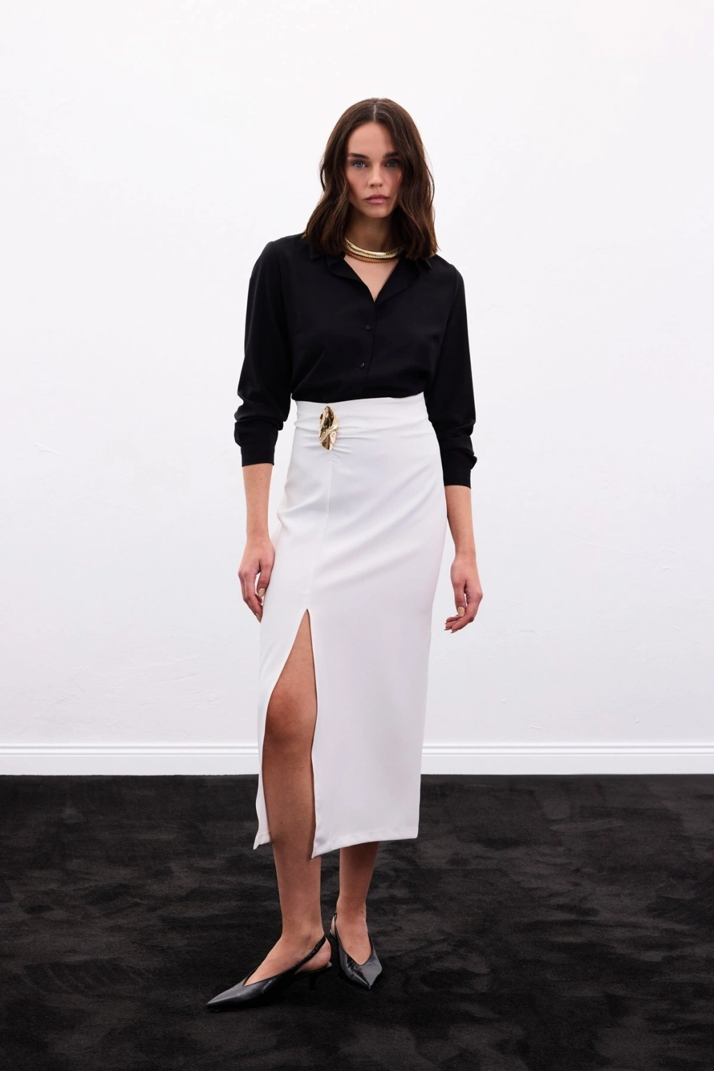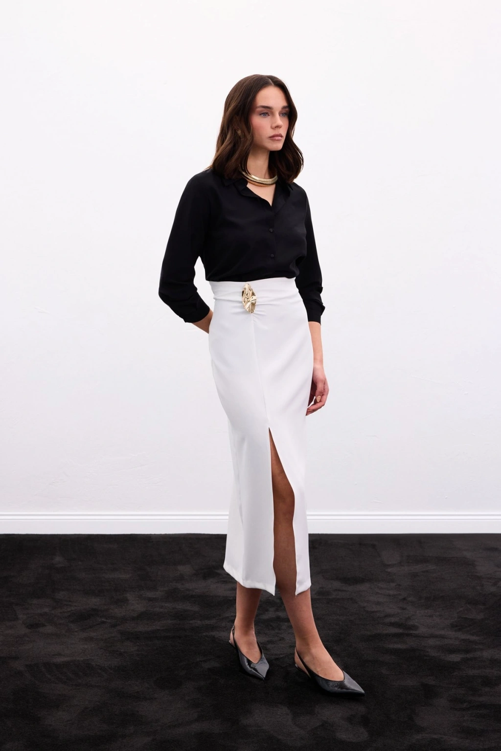 Aksesuar Kuşaklı Yırtmaçlı Etek - Siyah