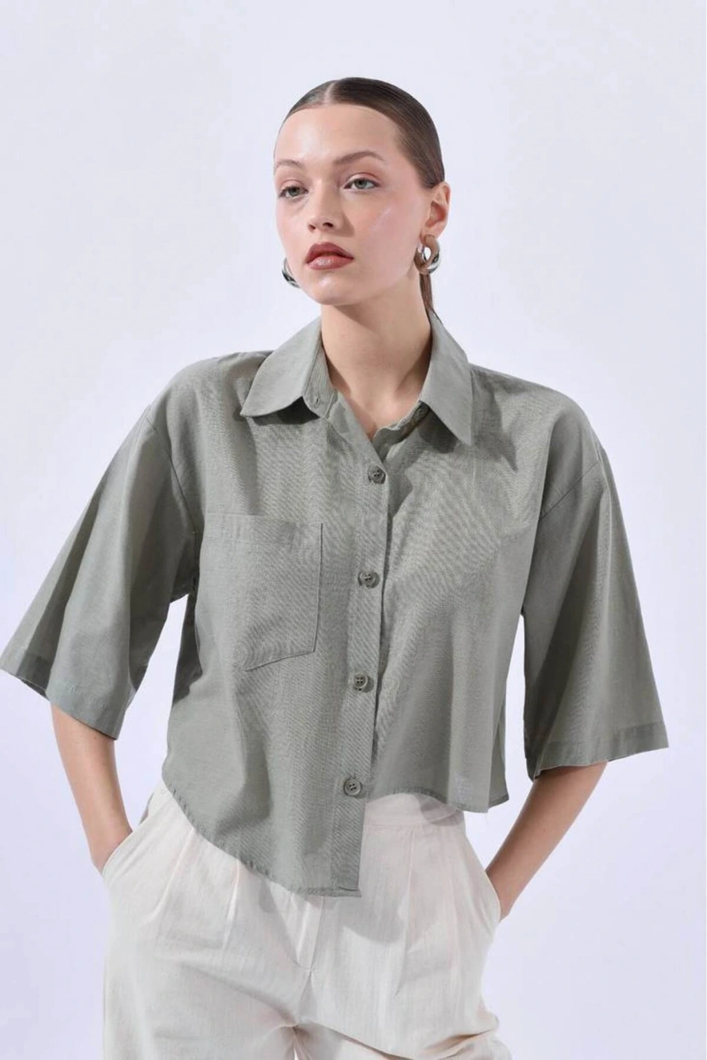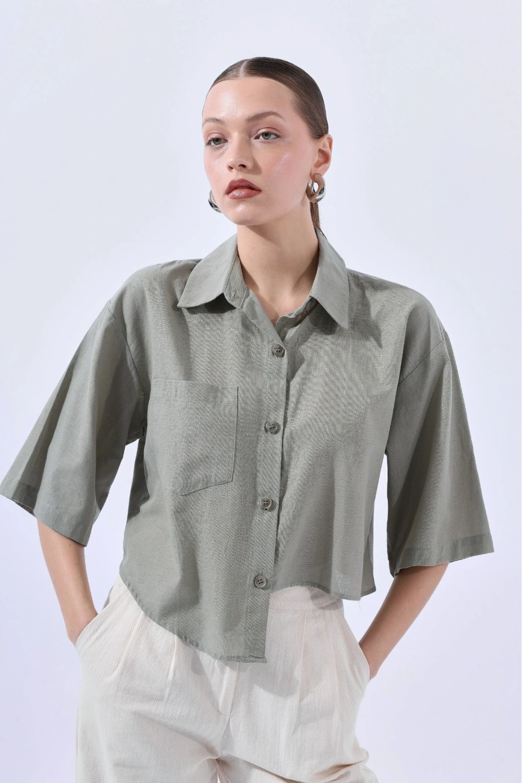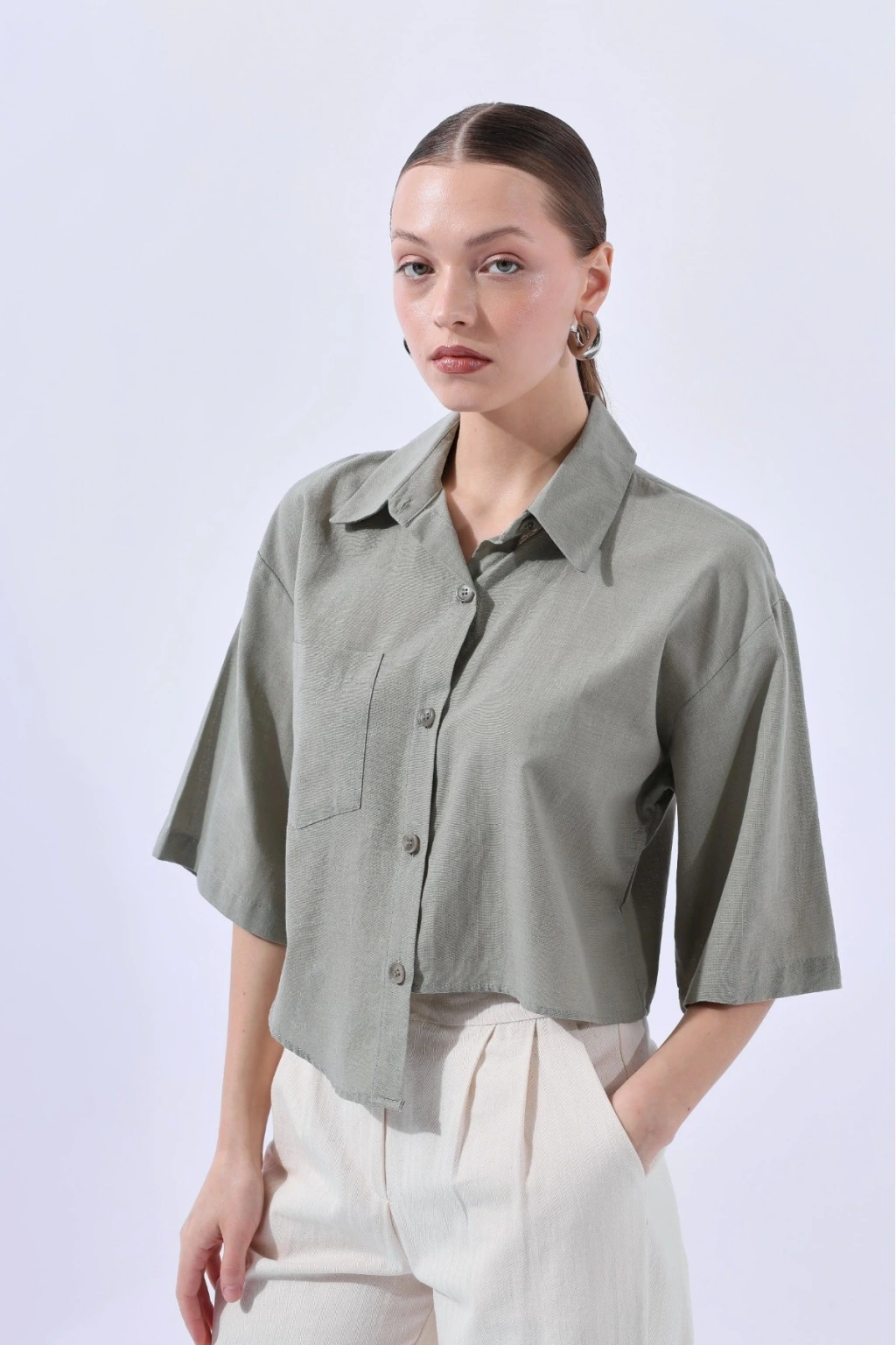 HAKİ YAN DETAYLI GÖMLEK