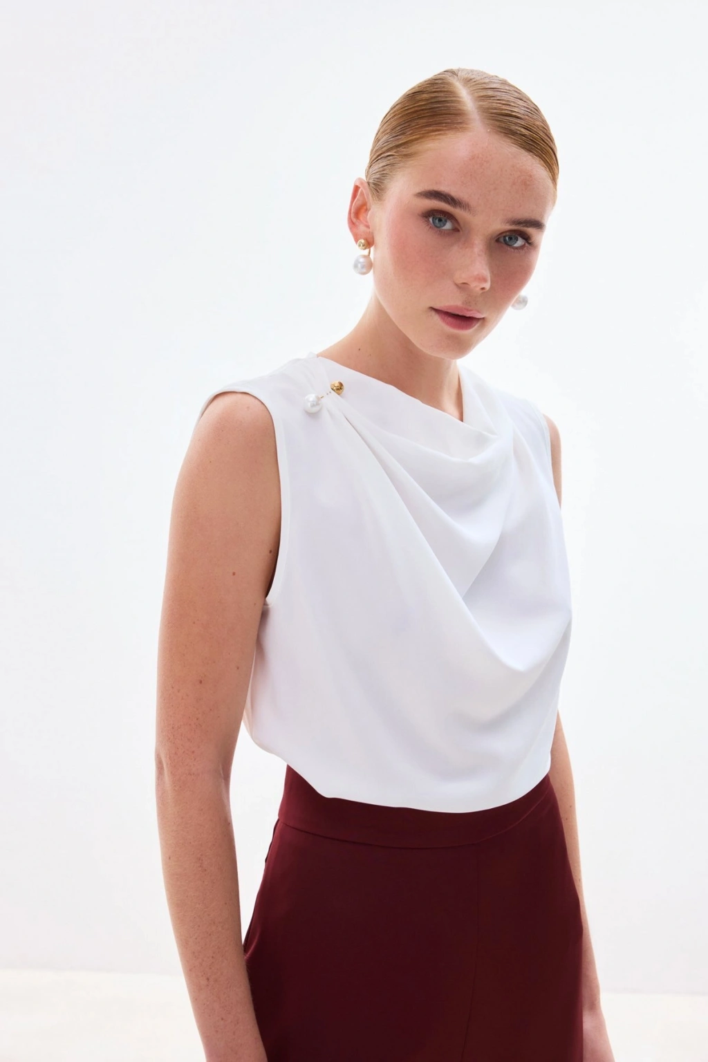 Aksesuar Kuşaklı Kolsuz Bluz - Ekru