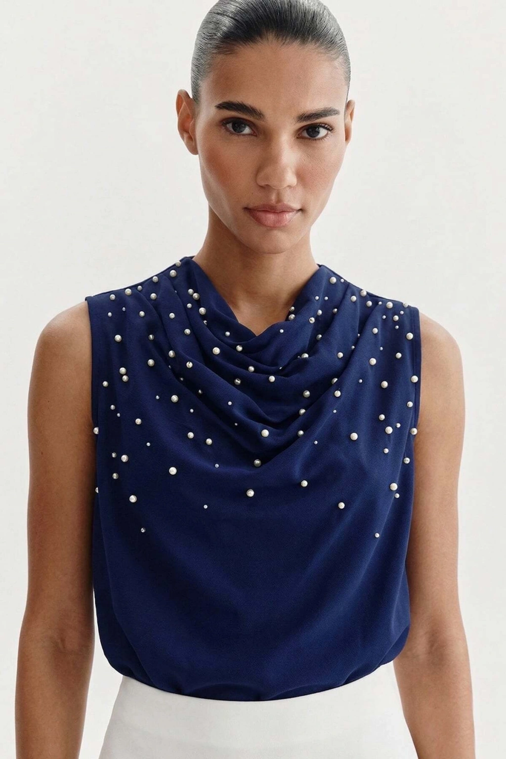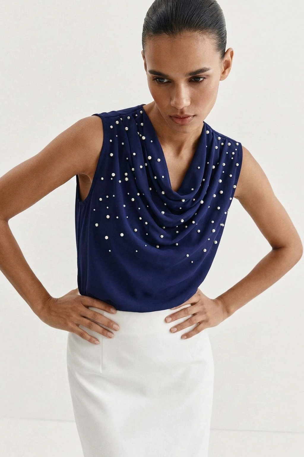 Aksesuar Detaylı Kolsuz Bluz - Ekru