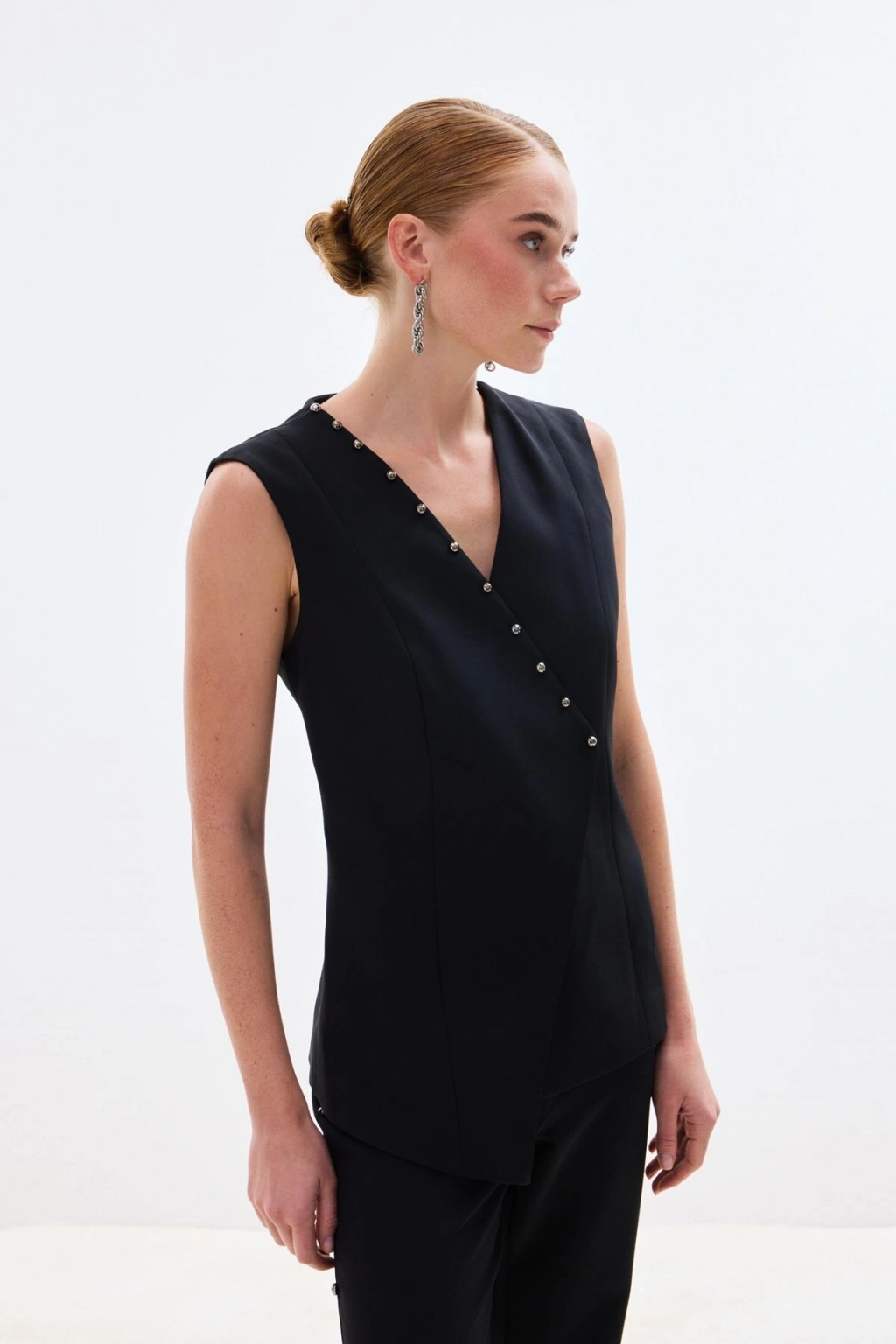 İnci Detaylı Yelek - Siyah