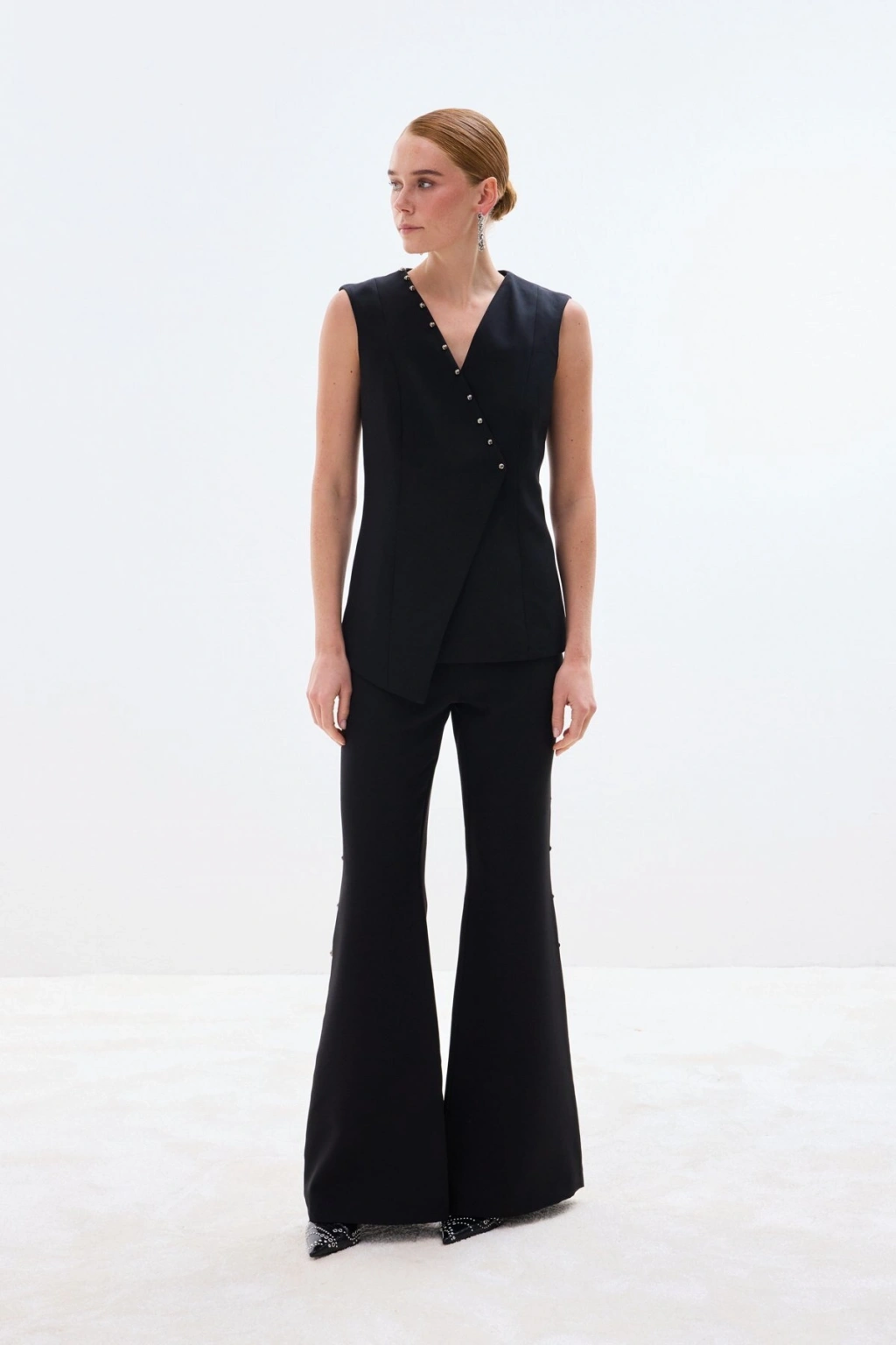 İncili Kruvaze Yelek - Siyah