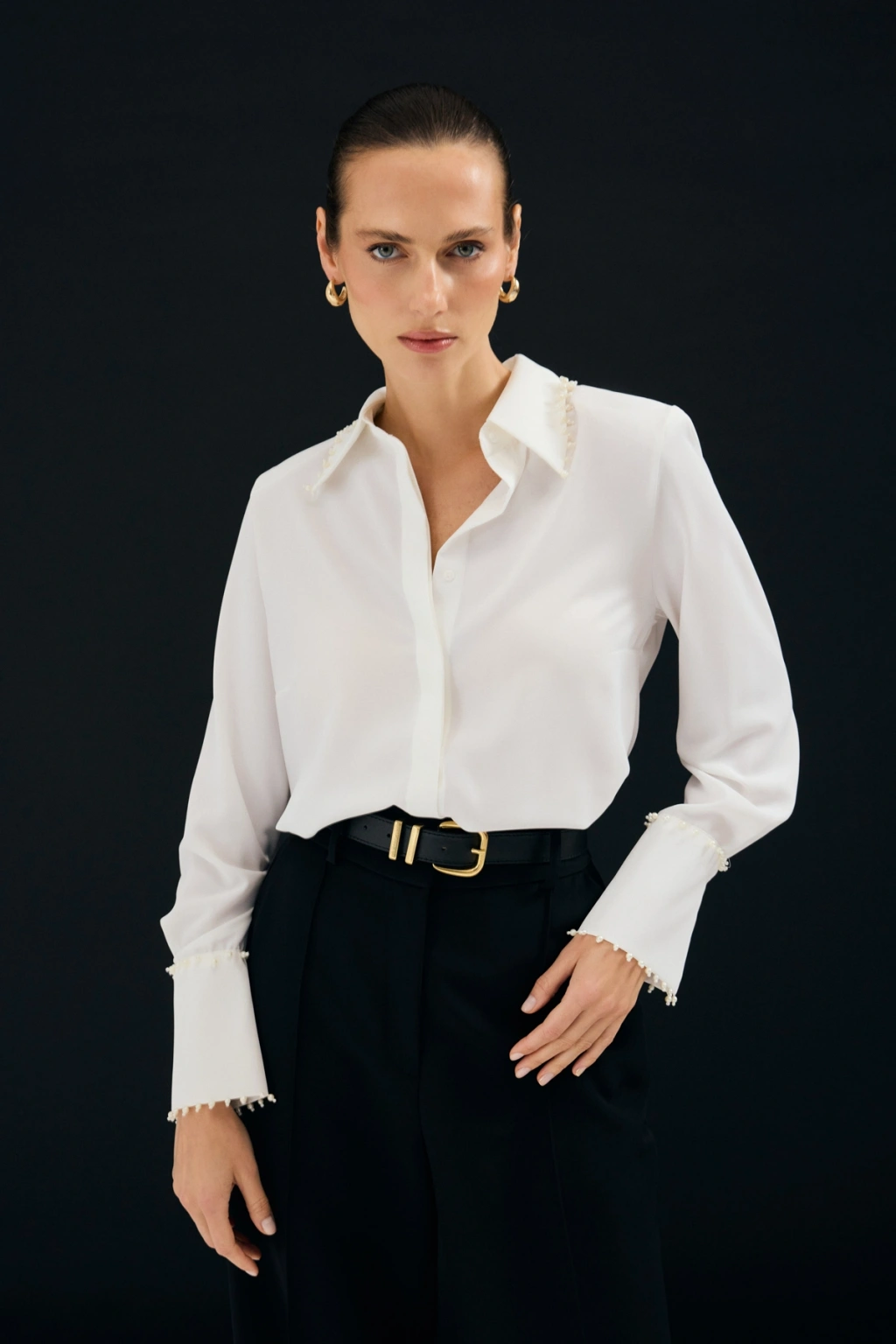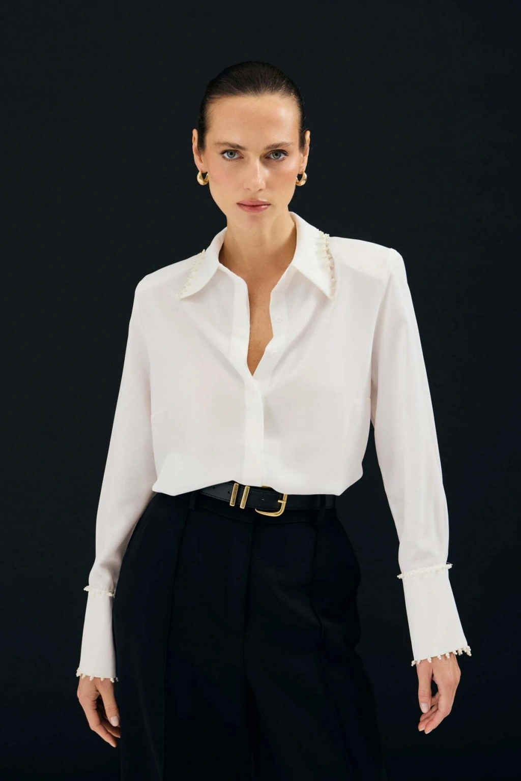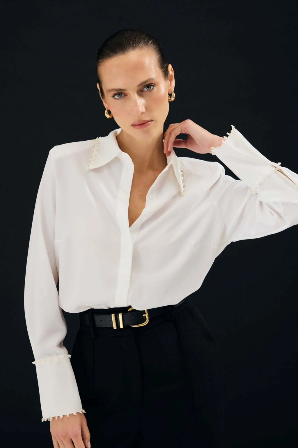 Zincir Aksesuarlı Düz Gömlek - Ekru