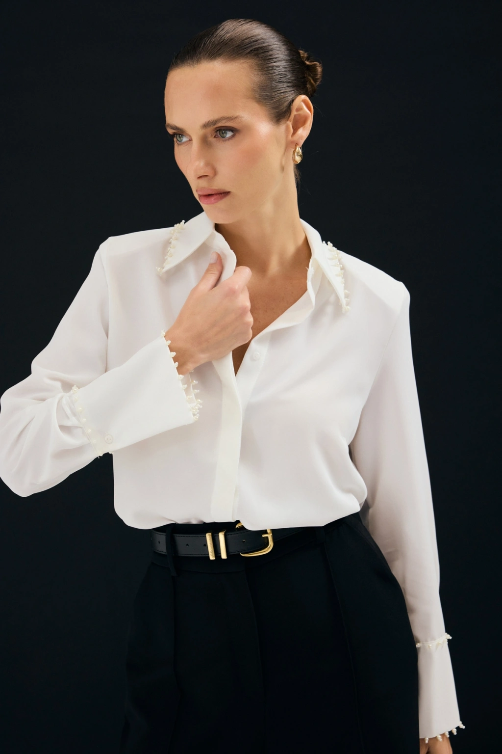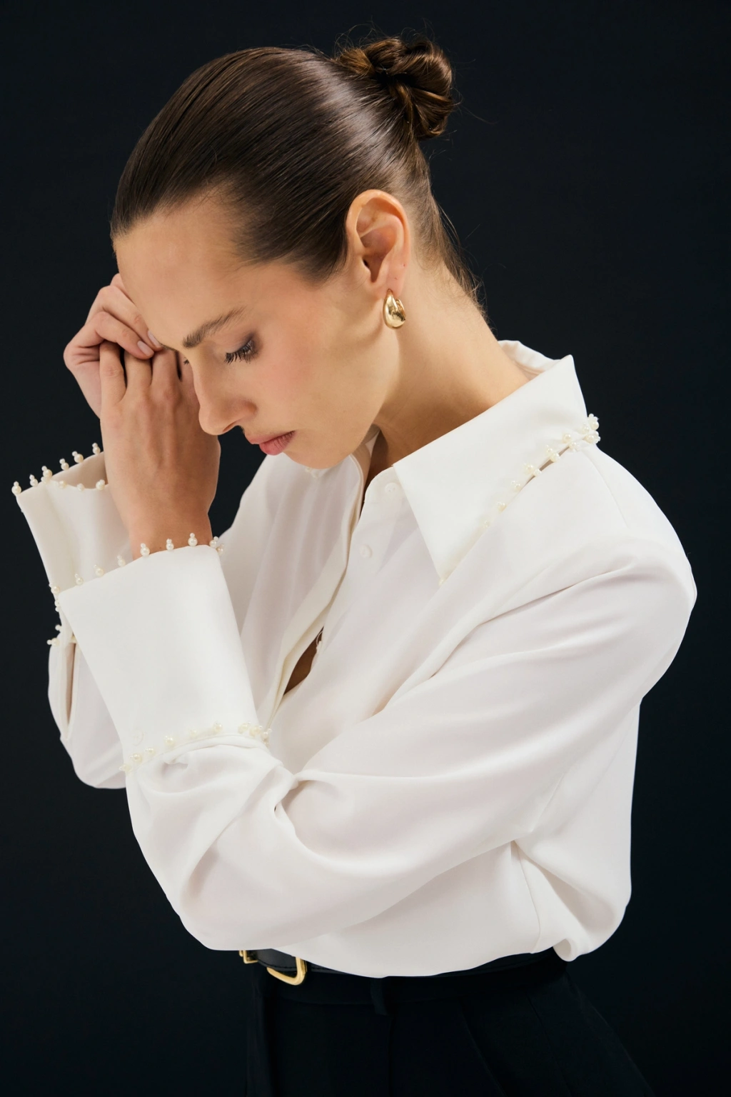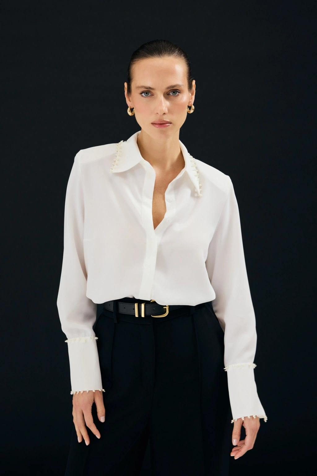 Zincir Aksesuarlı Düz Gömlek - Ekru