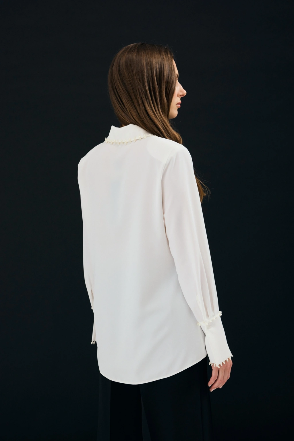 Fırfır Detaylı Nakışlı Gömlek - Ekru