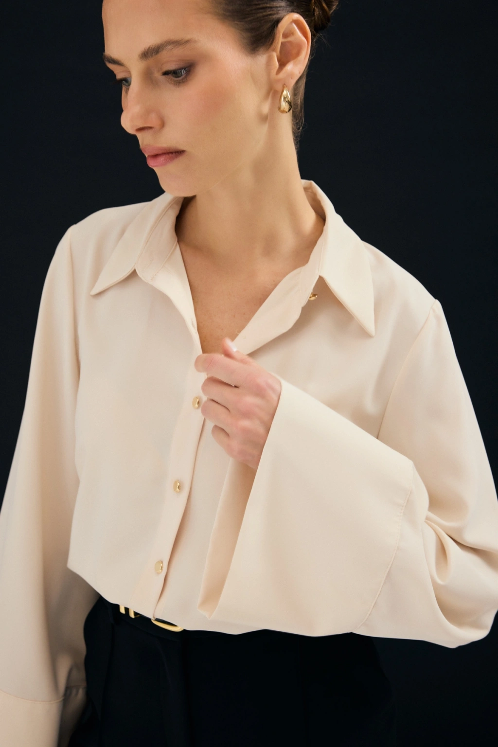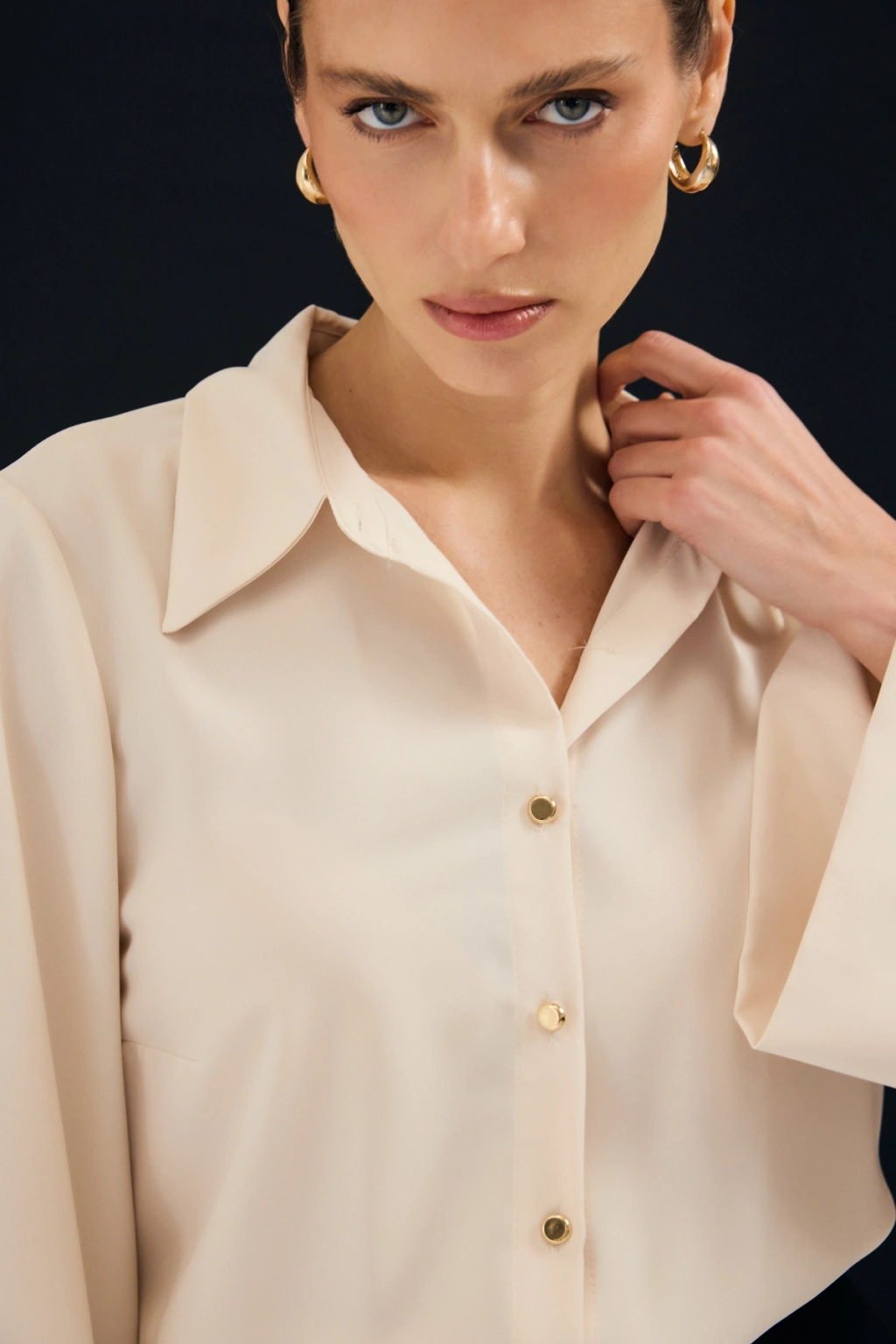 Düğme Detaylı Gömlek - Ekru