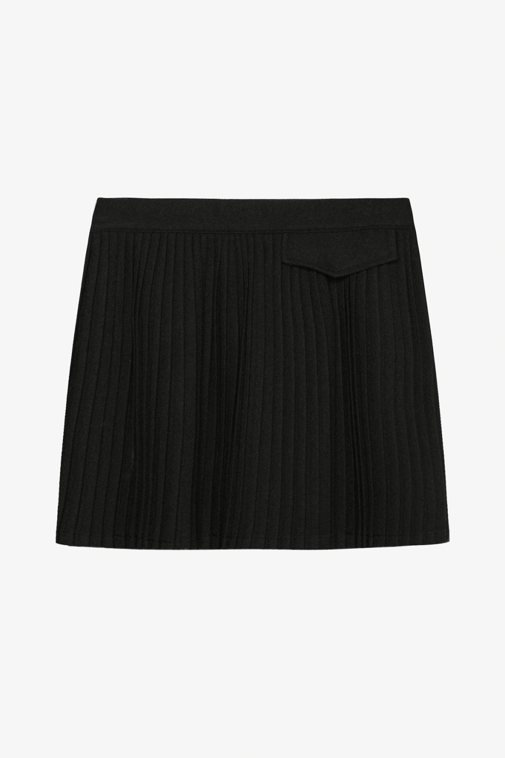 İçİ kendİ rengİnden şort astarlı, pİle detaylı, cep kapaklı, yandan fermuar ve düğme kapamlı, yüksek bel, mİnİ boy etek.