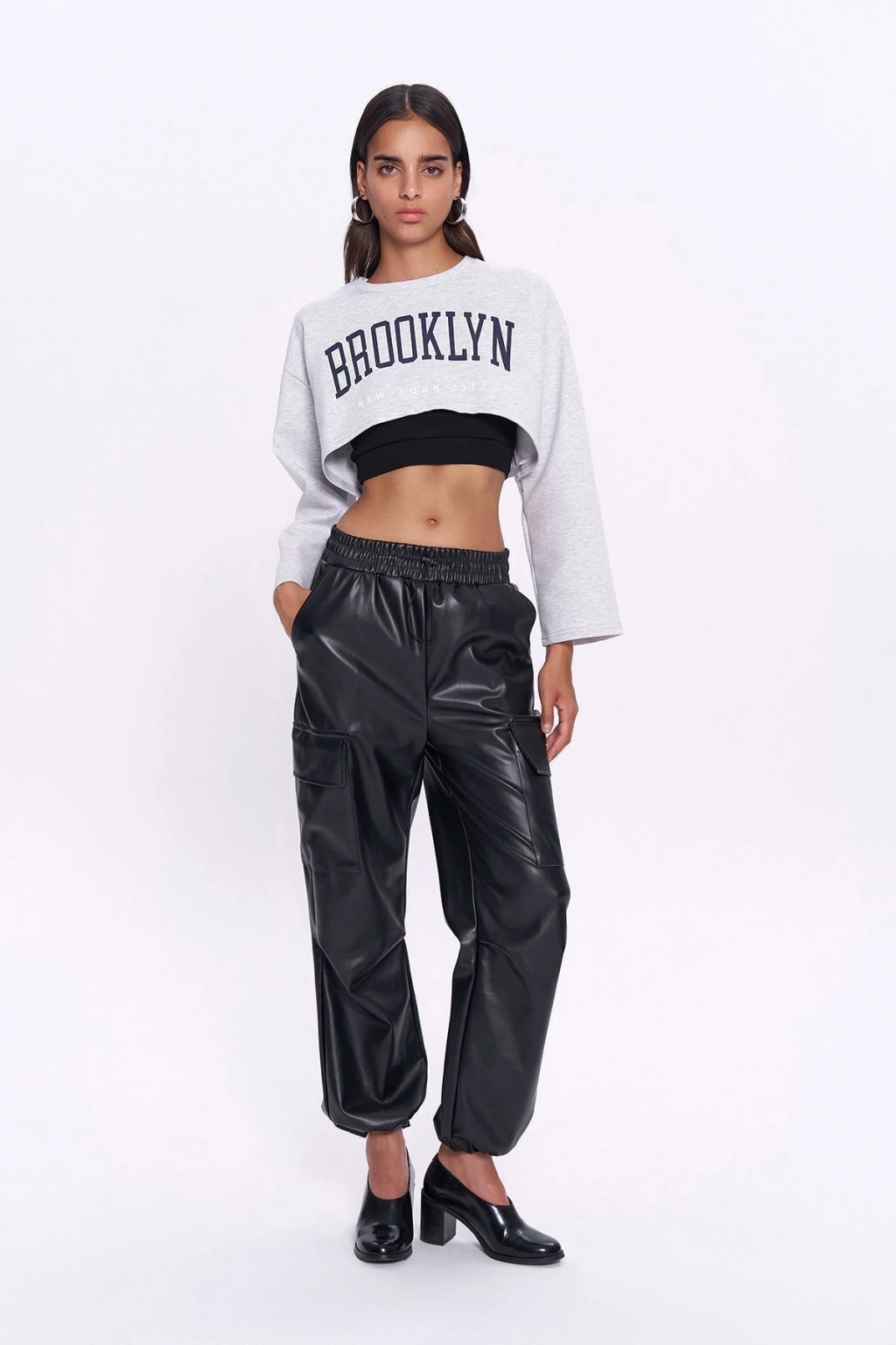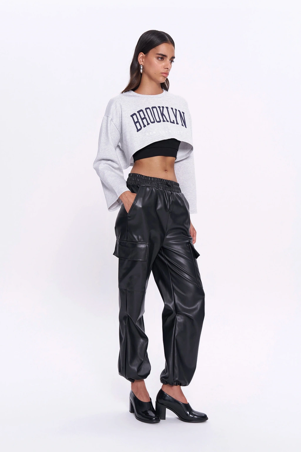 - Her yaş grubuna hitap eden, şık ve fonksiyonel tasarımıyla dikkat çeken kargo pantolon, günlük kullanım için idealdir; - Suni deri materyali sayesinde dayanıklılığı ve estetik görünümü bir arada sunar; - Kargo silueti ile modern ve rahat bir tarz yaratırken, düz deseniyle kolayca kombinlenebilir; - Orta kalınlıkta kumaşı, mevsim geçişlerinde ideal konfor sağlar; - Regular boy kesimi sayesinde vücut hatlarını saran ancak sıkmayan bir yapıya sahiptir; - Lastikli paça tasarımı, pratik kullanım imkanı sunarken şık bir görünüm kazandırır; - Mom kalıbı ile rahat hareket etme özgürlüğü sağlar ve her tür ayakkabı ile uyum içinde kombinlenebilir; - Yan cepleri sayesinde küçük eşyalarınız için ekstra depolama alanı sunar.; - Trend ortamlarda dahi stilinizi korumanız için idealdir; modası geçmeyen tasarımıyla gardırobunuzun vazgeçilmezi olacak;
