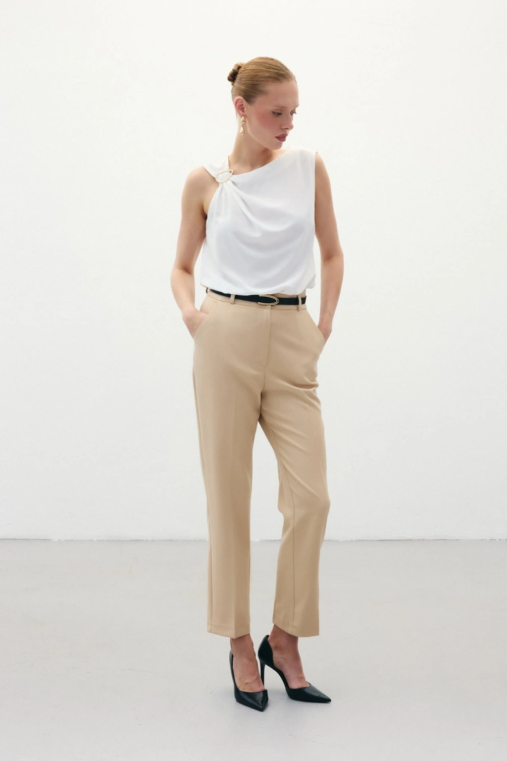 Bel Aksesuarlı Pantolon - Ekru