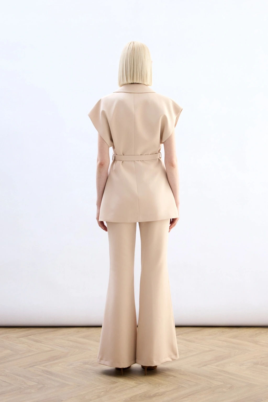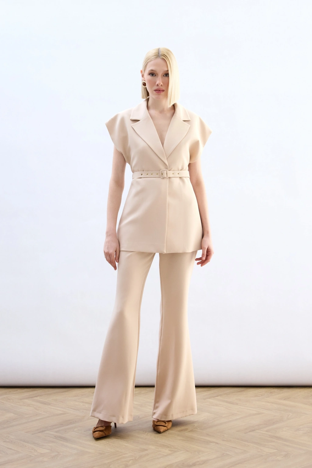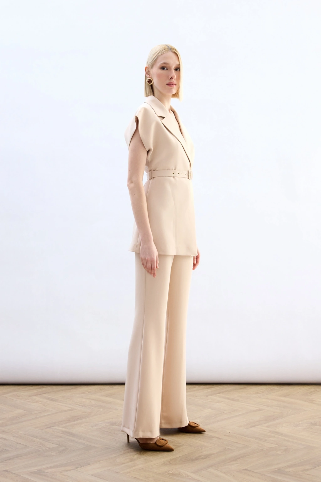 Omuz Aksesuarlı Kuşaklı Yelek - Ekru