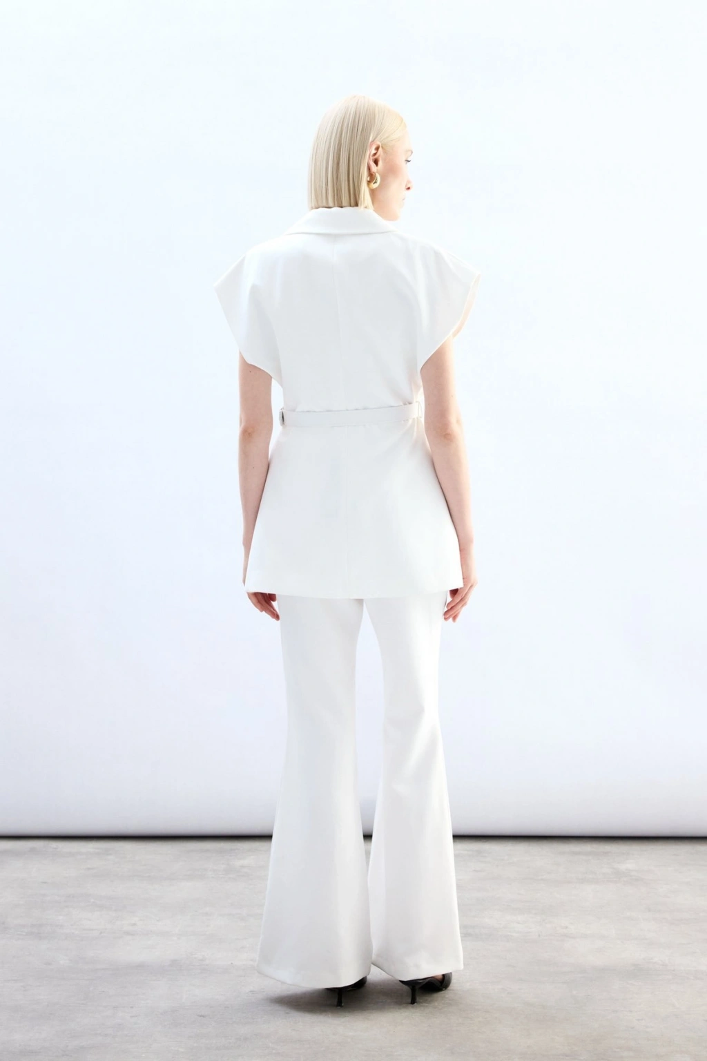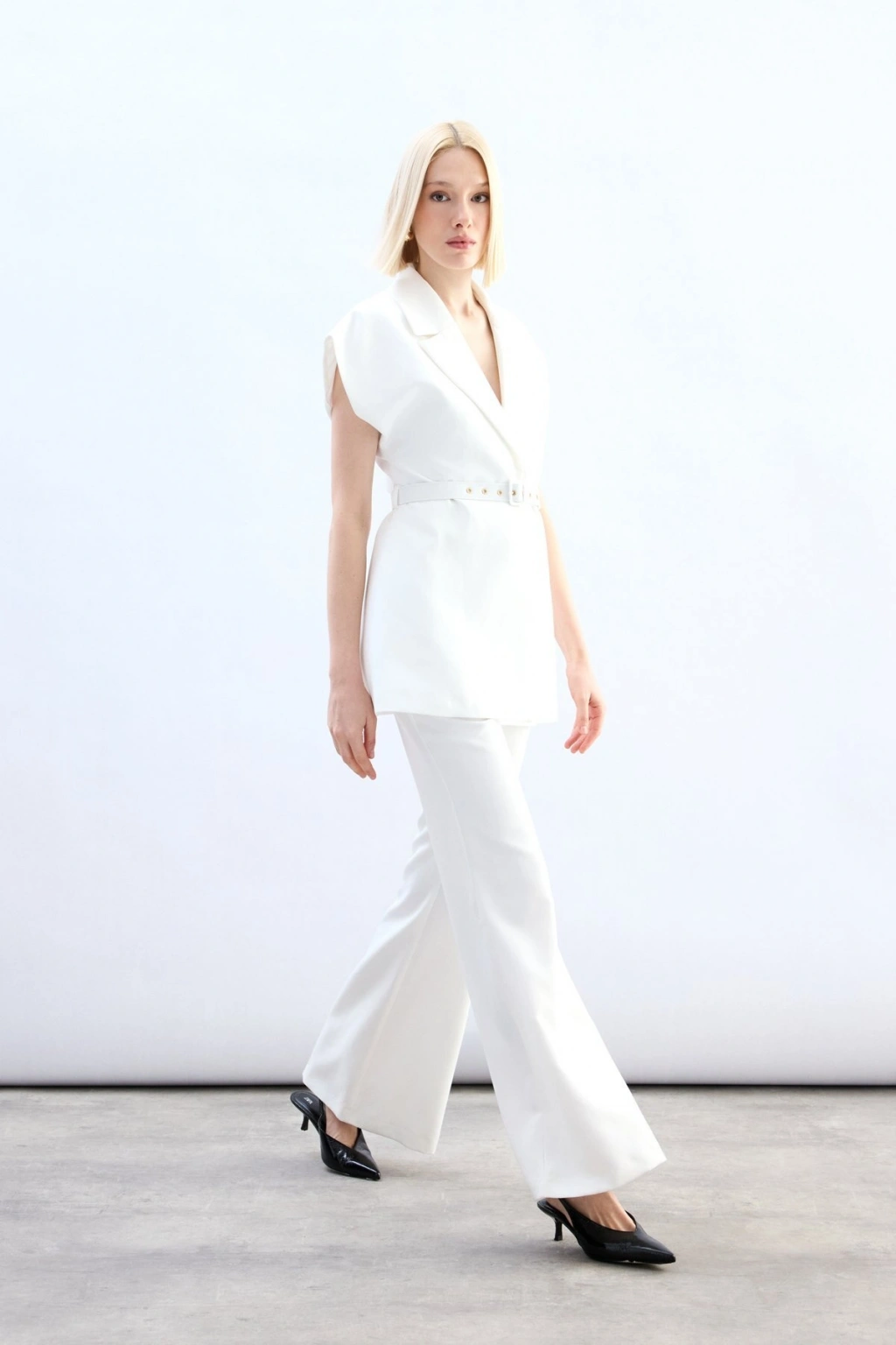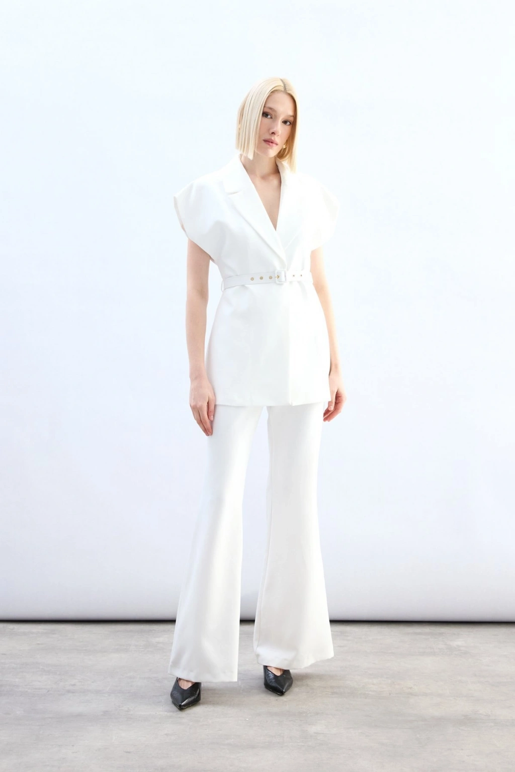 Kemerli Uzun Yelek - Ekru