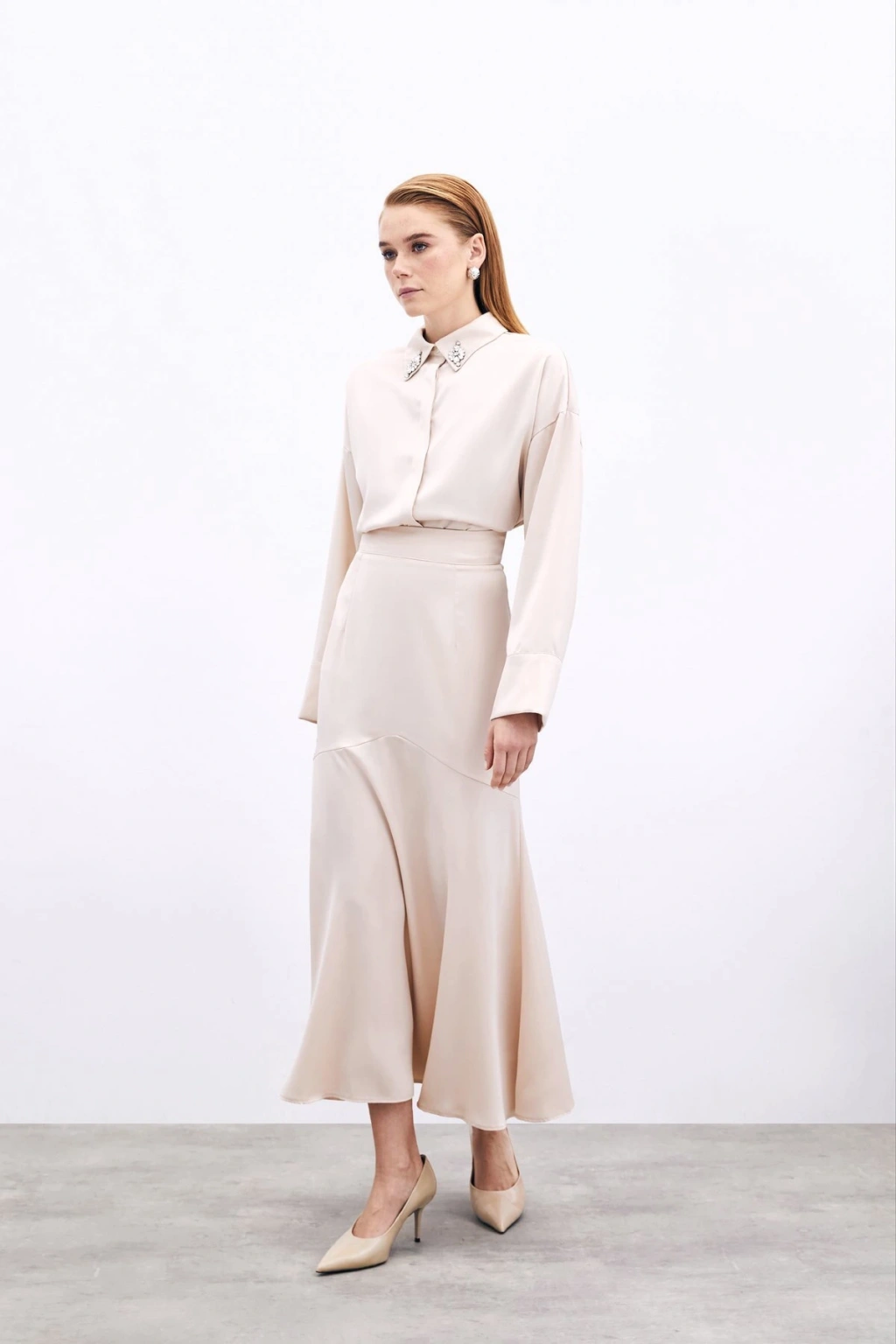 Midi Boy Saten Etek EKRU