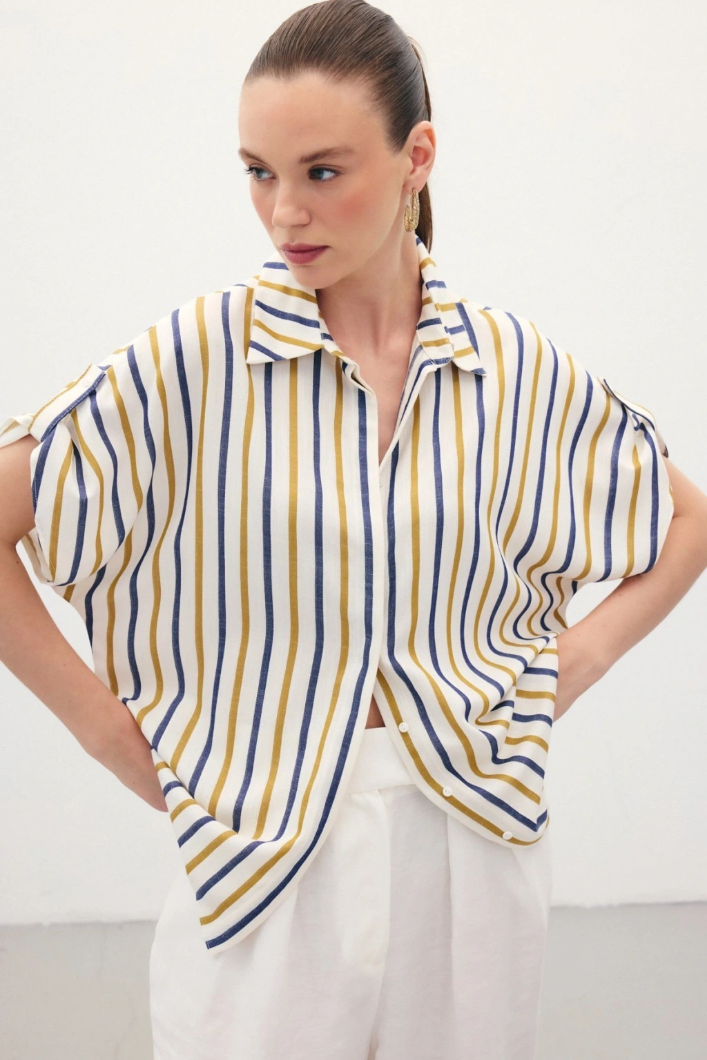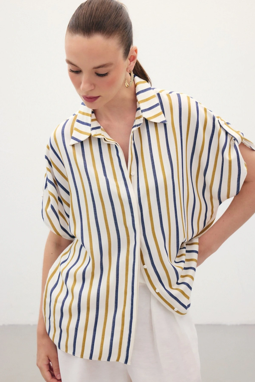 Aksesuarlı Klasik Gömlek - Ekru