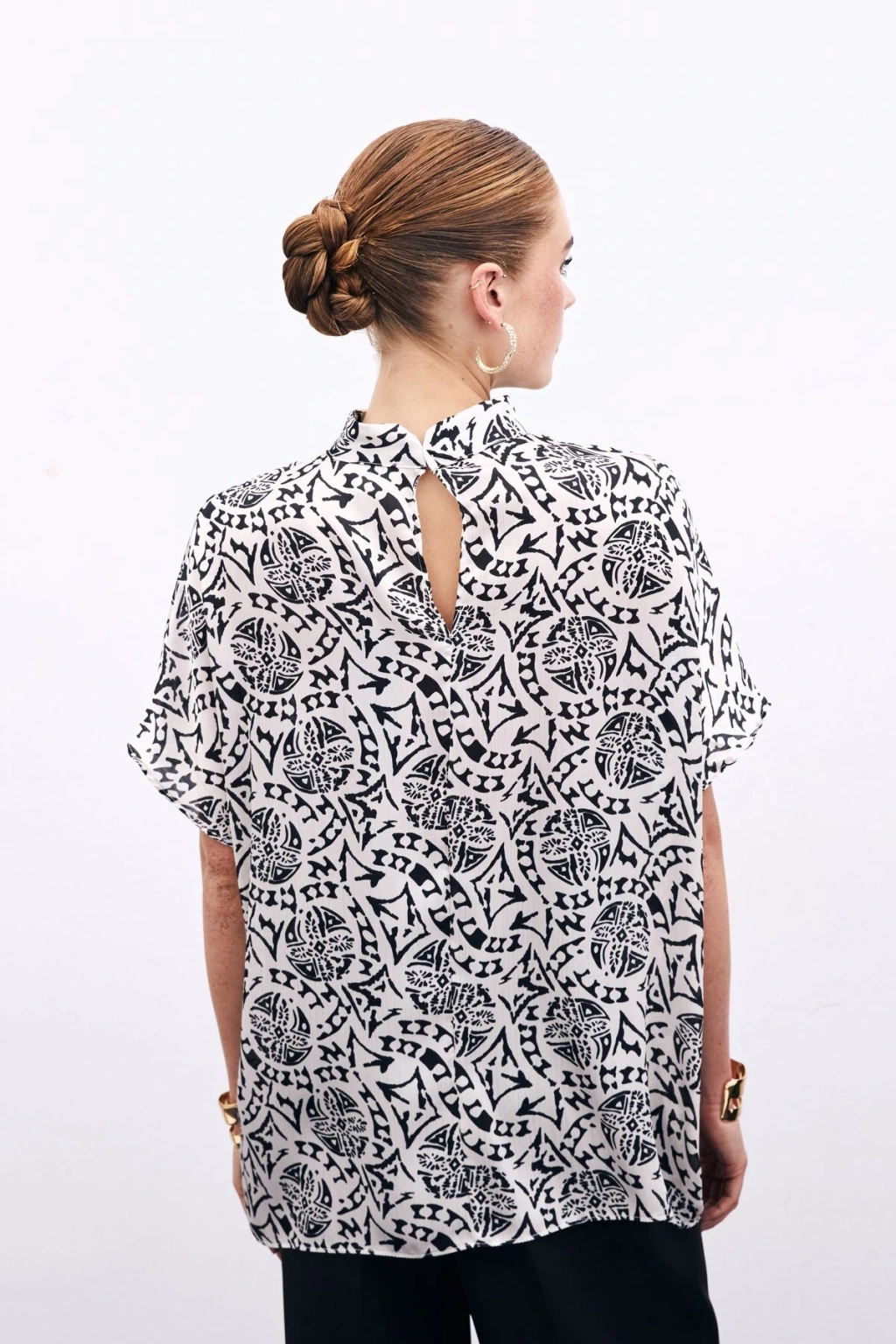 Aksesuarlı Salaş Bluz - Siyah