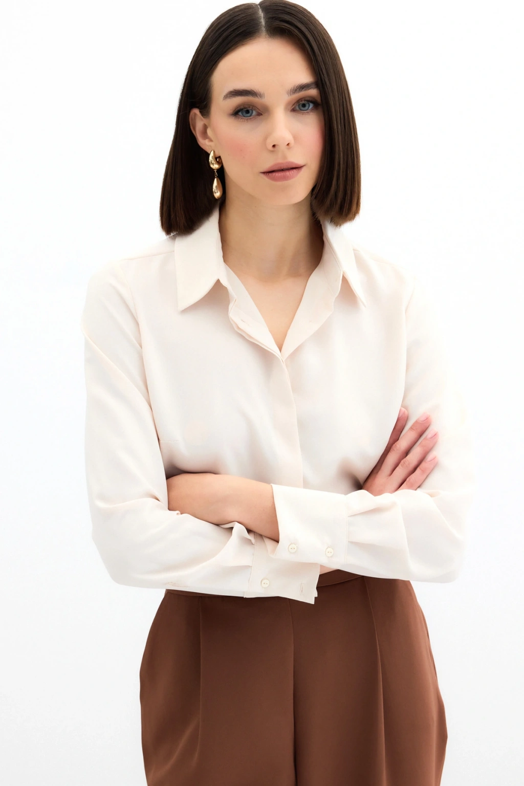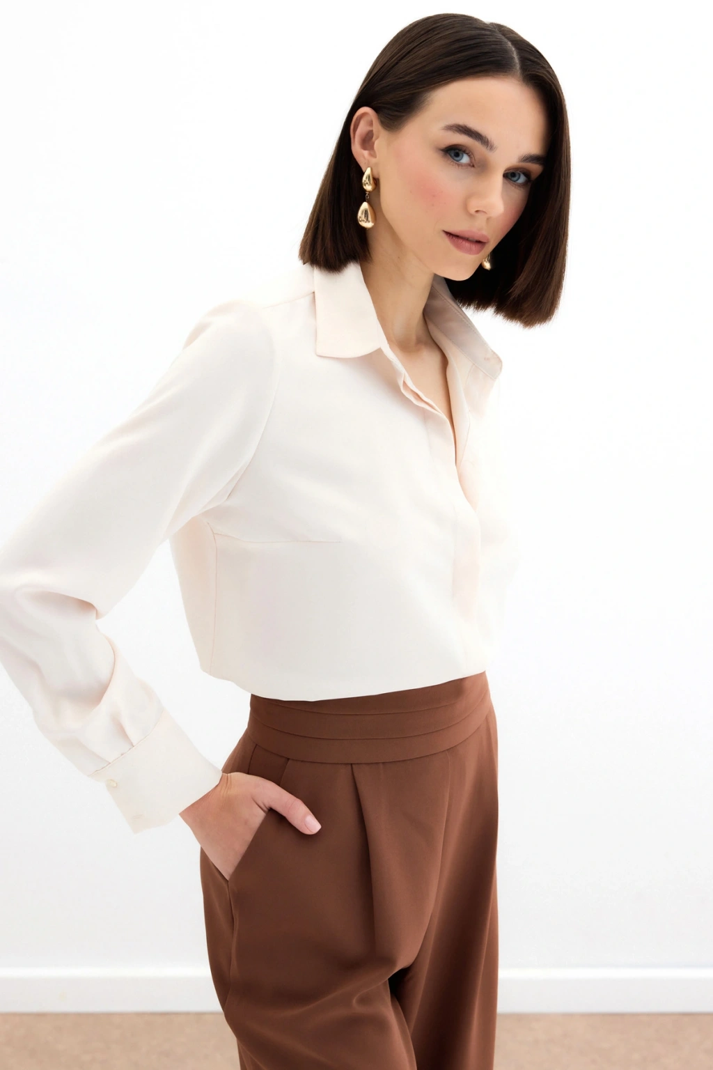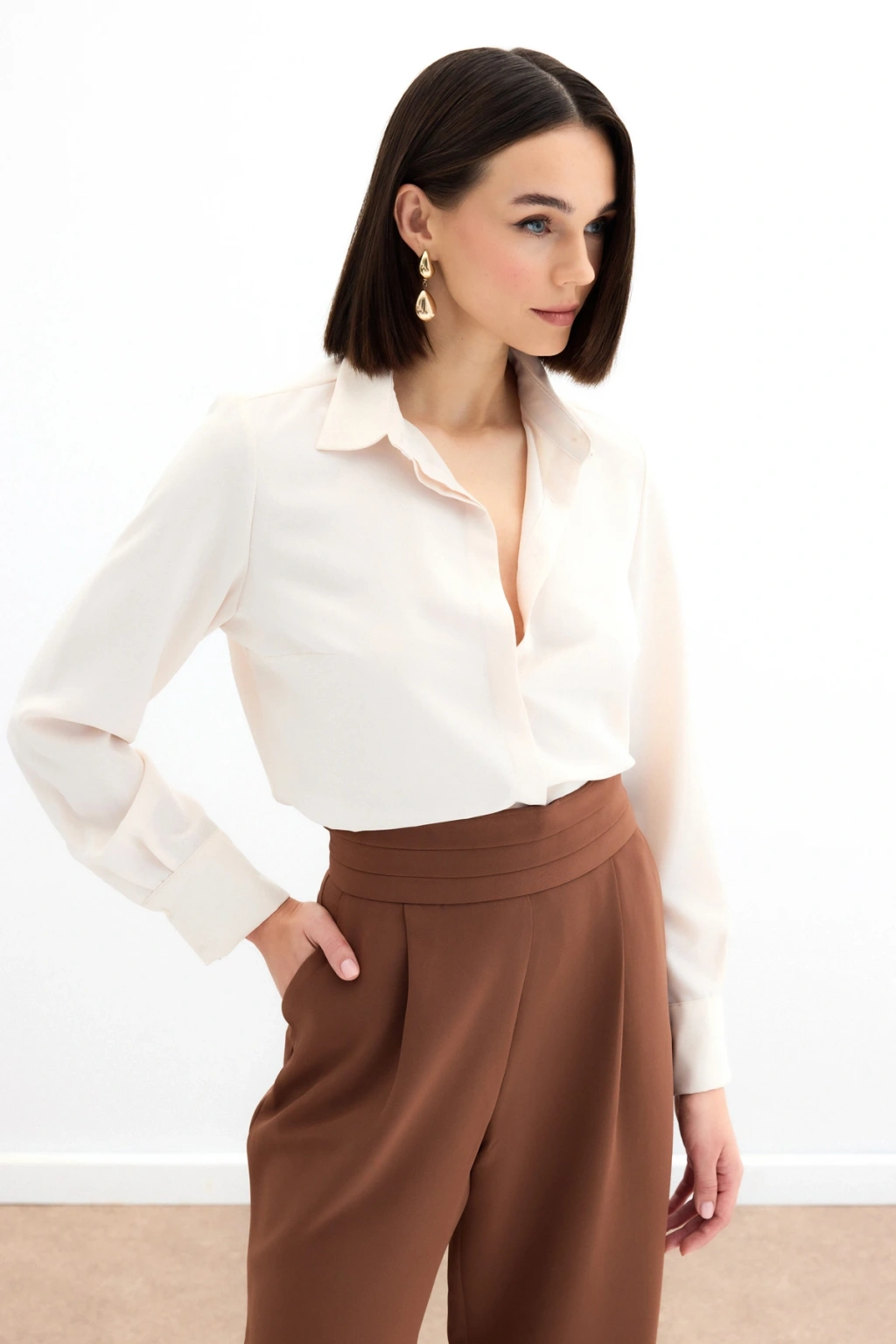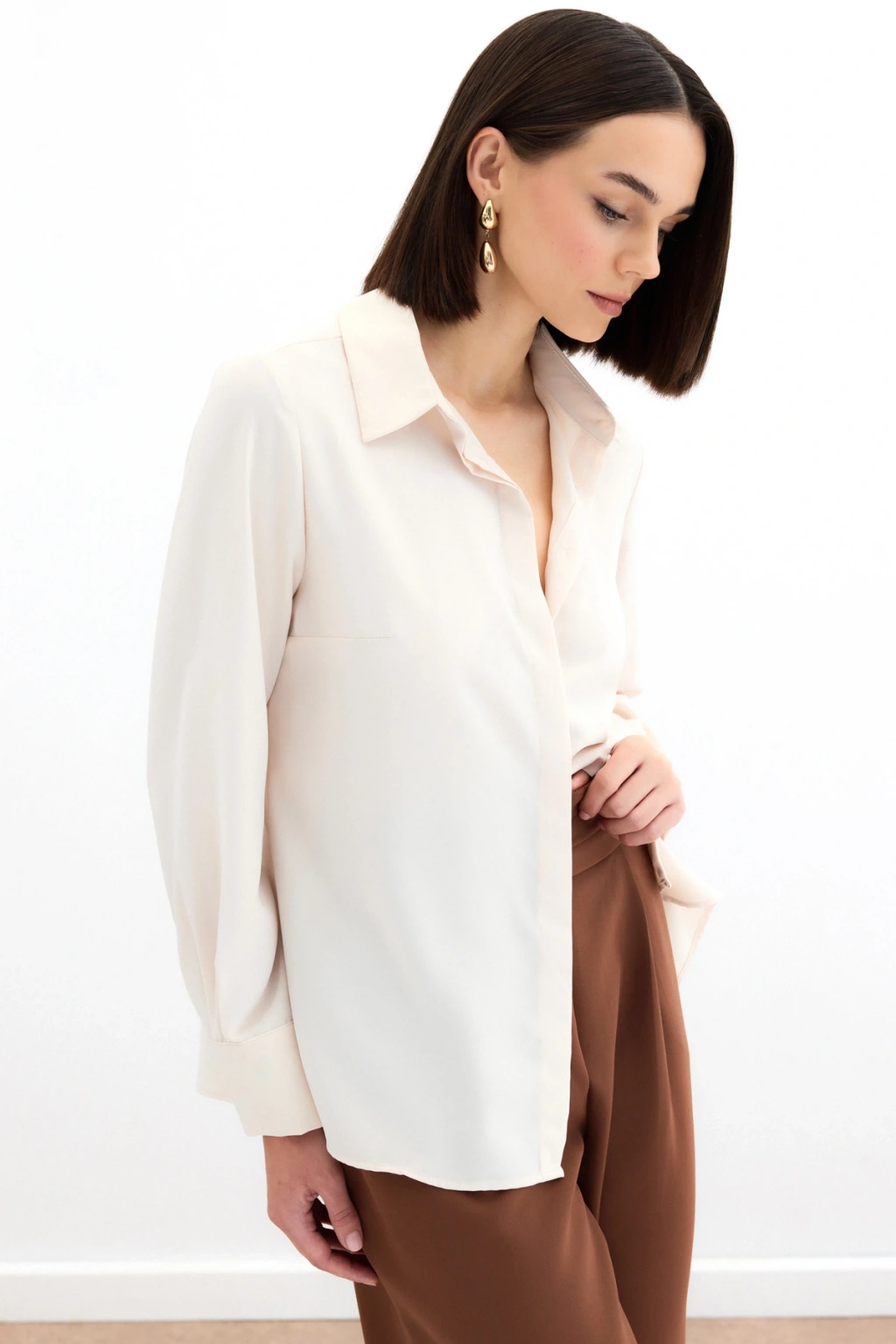 Aksesuarlı Klasik Gömlek - Ekru