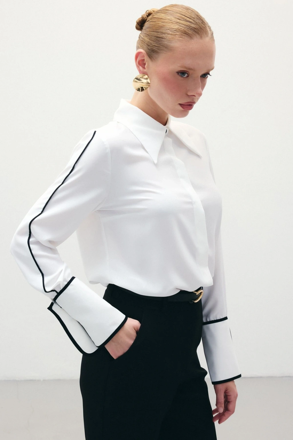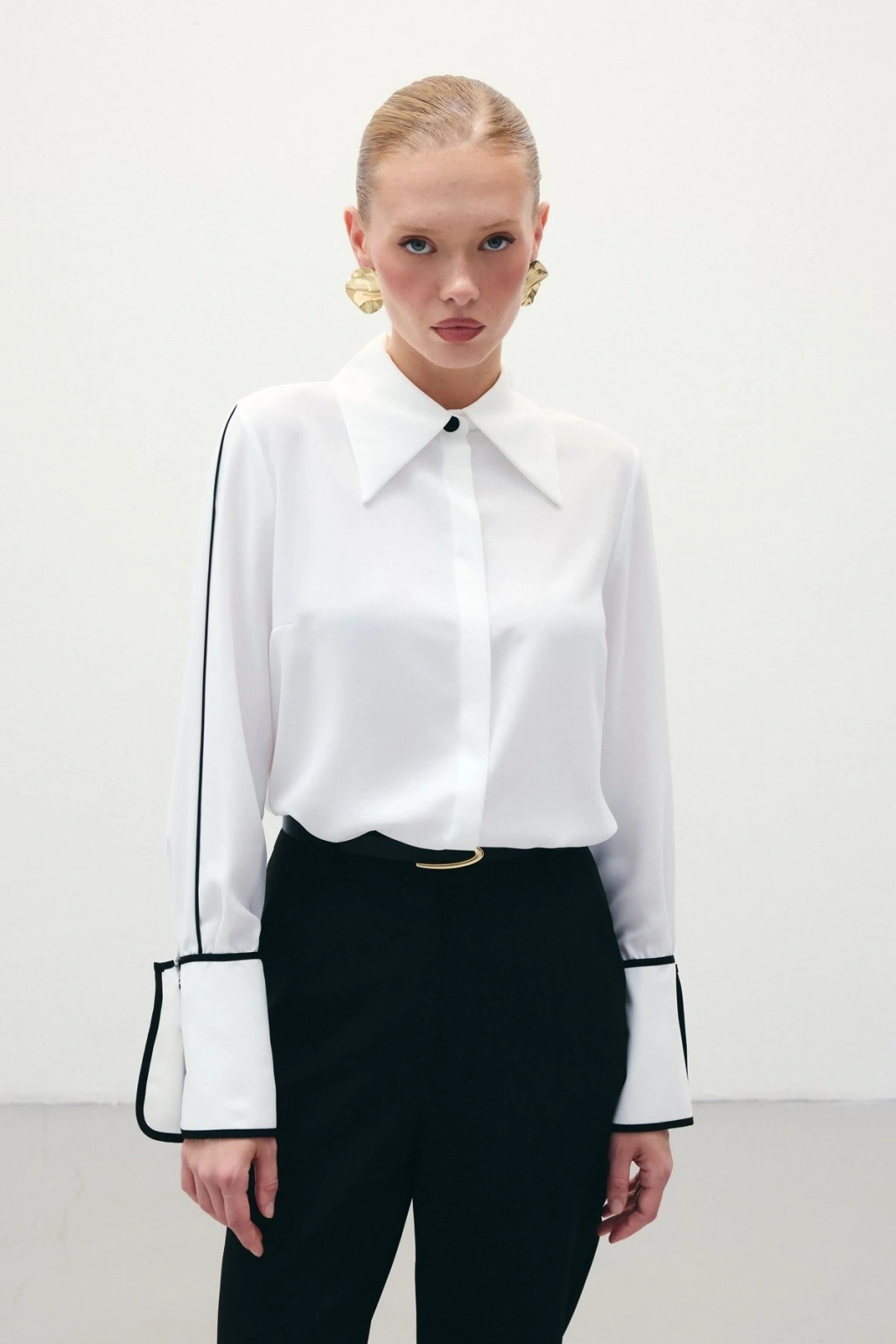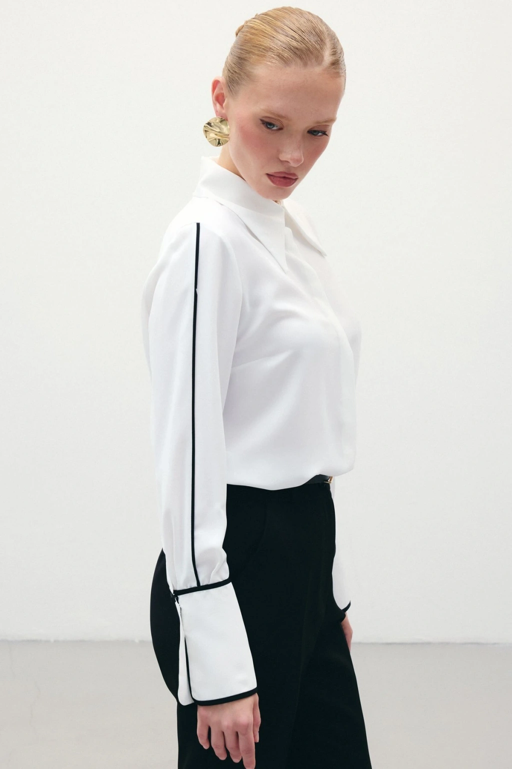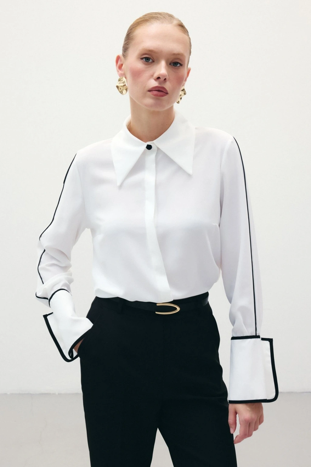 Klasik Manşetli Kontrast Gömlek - Ekru