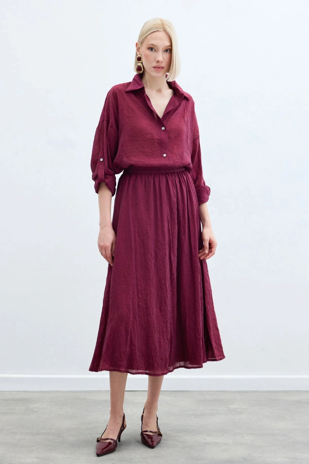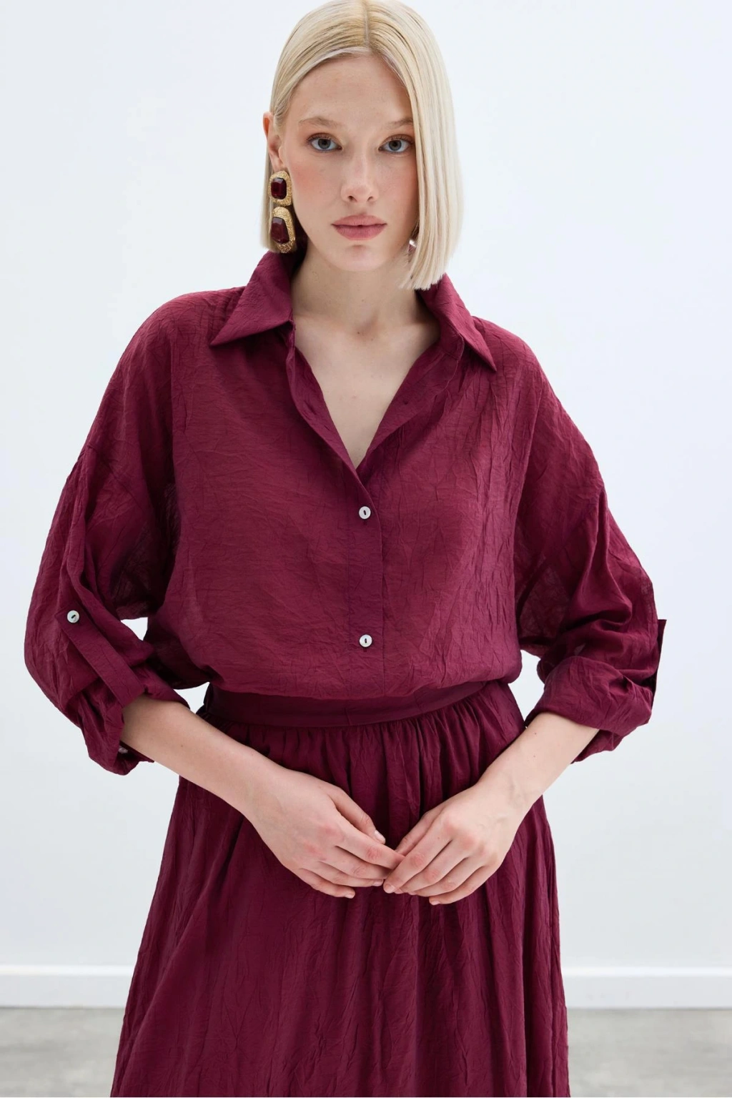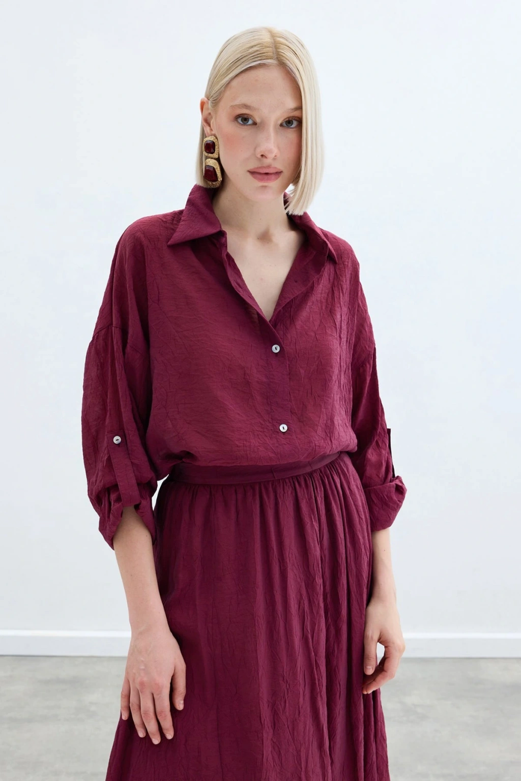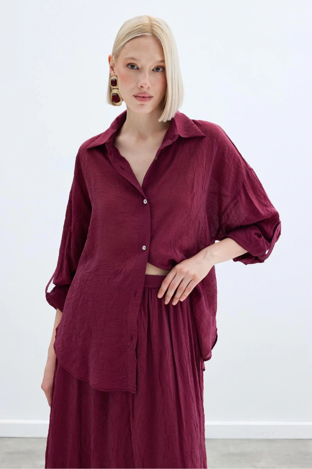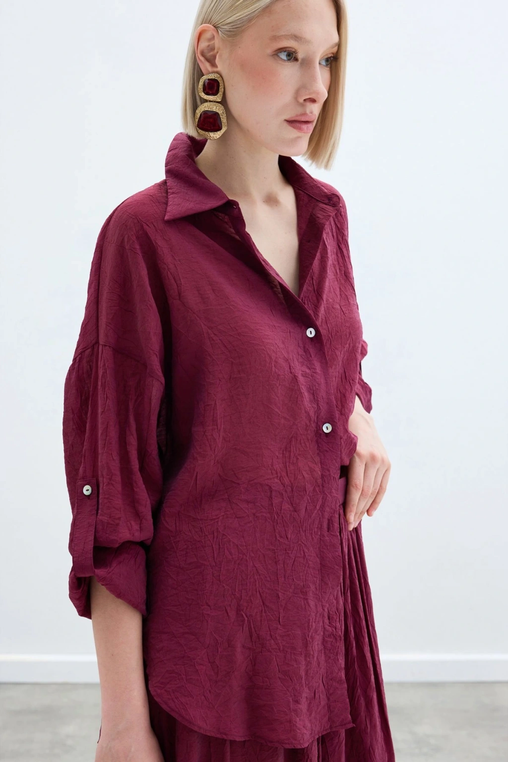 Kol Detaylı Salaş Gömlek - Bordo