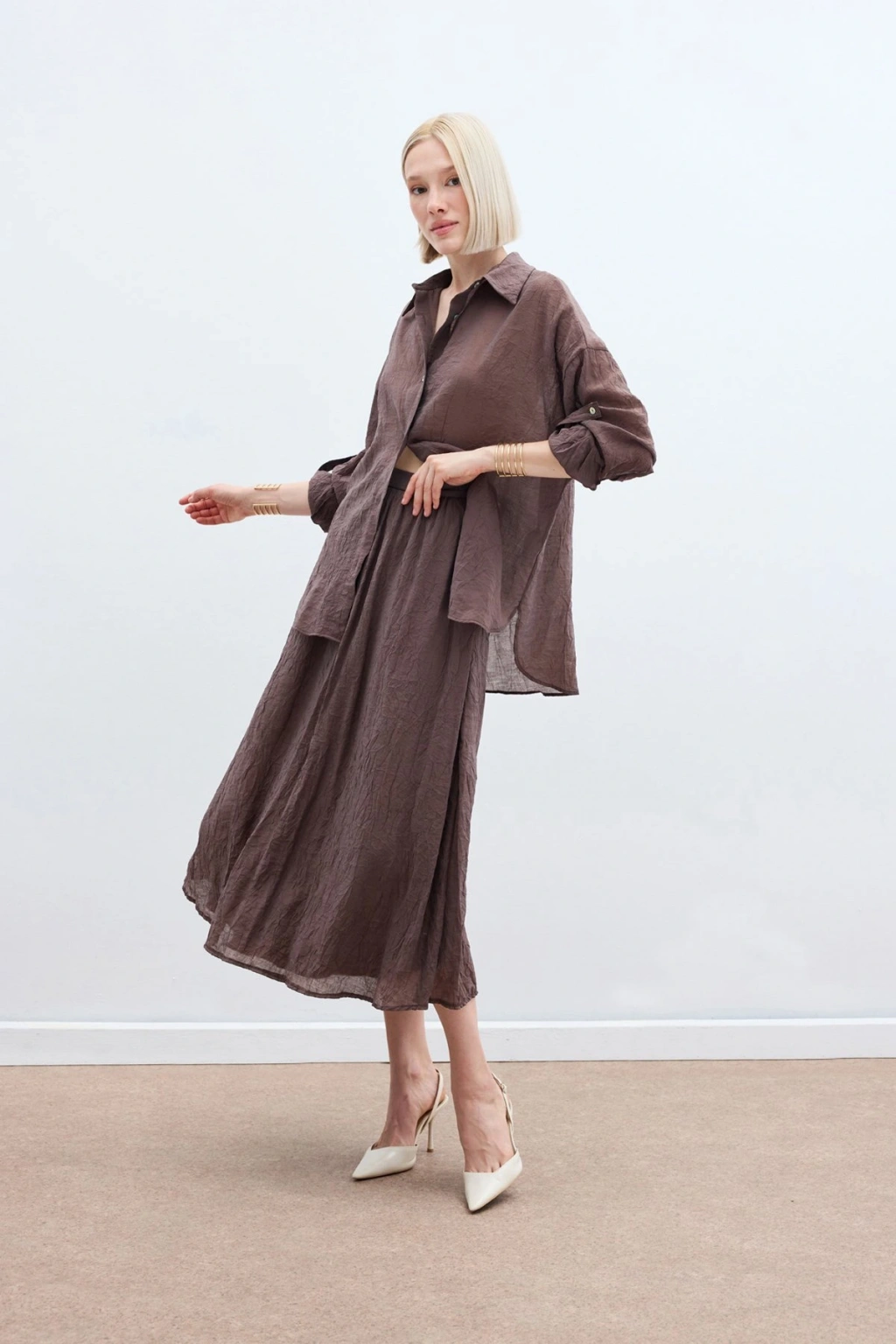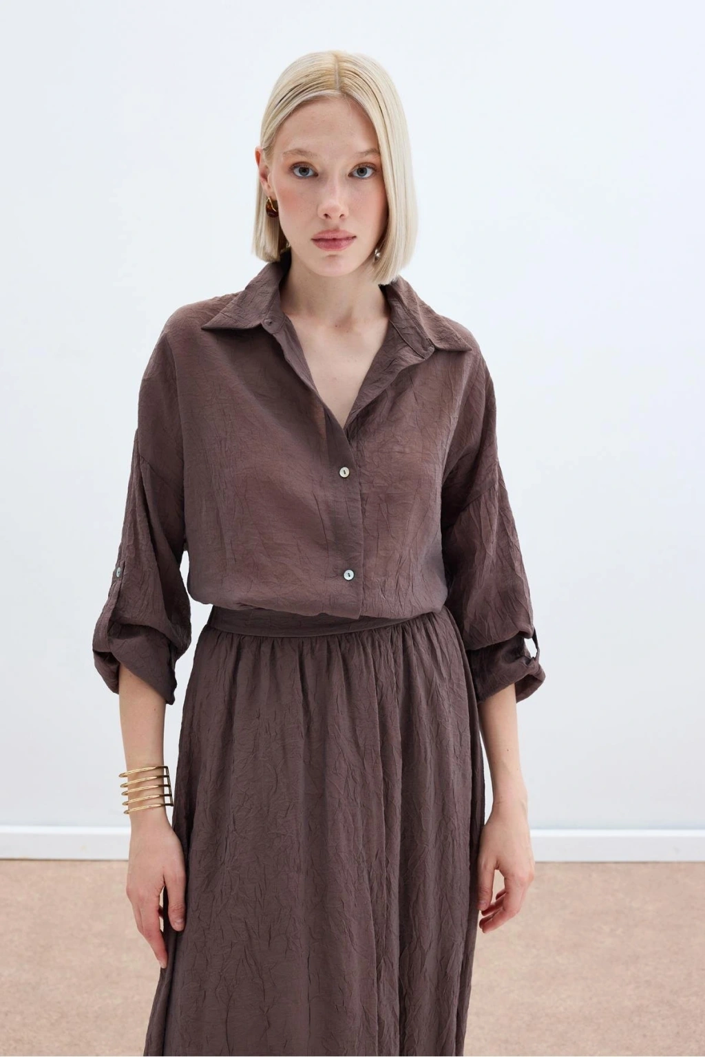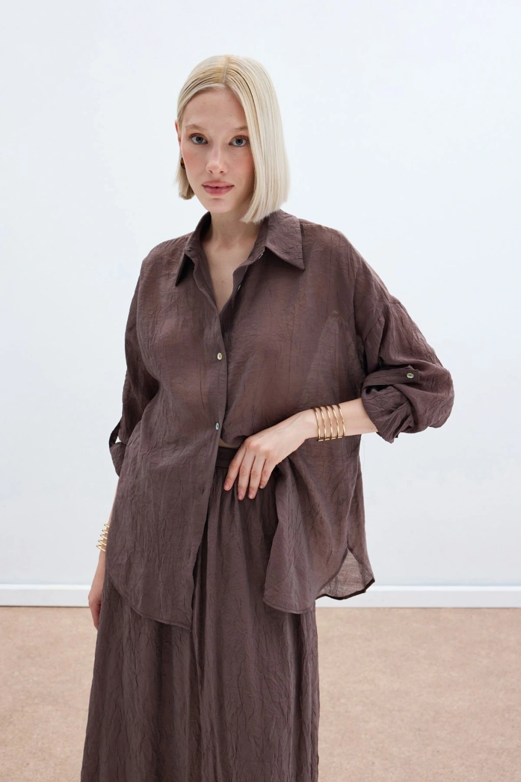 Kol Detaylı Salaş Gömlek - Kahve