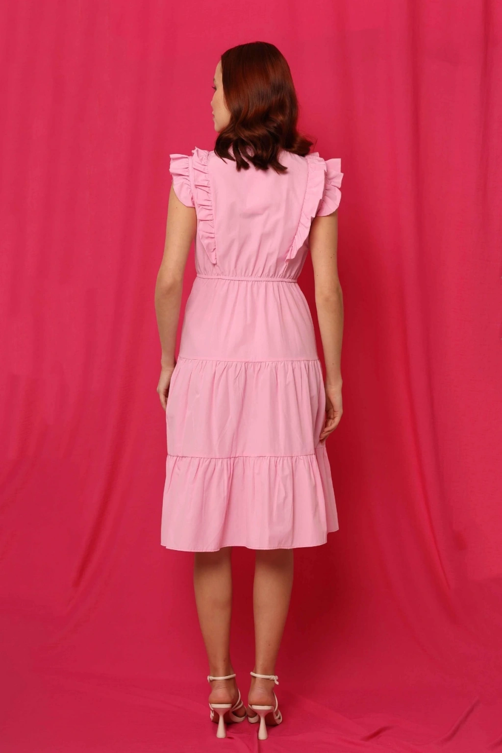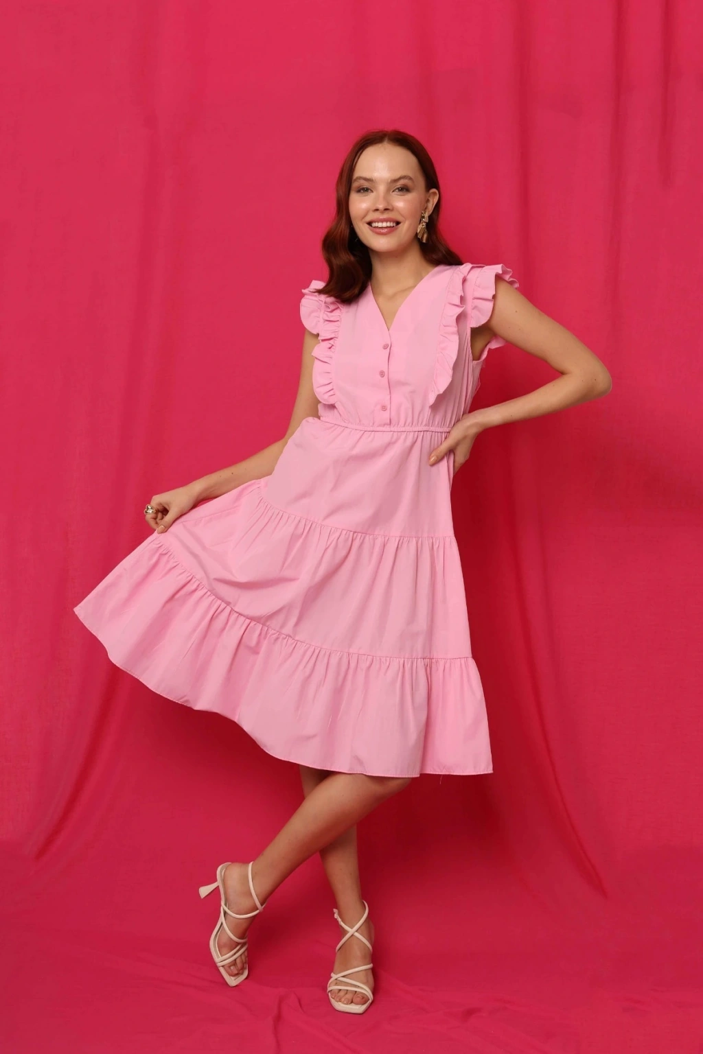 Sırt Dekolteli Çiçekli Uzun Elbise Pembe