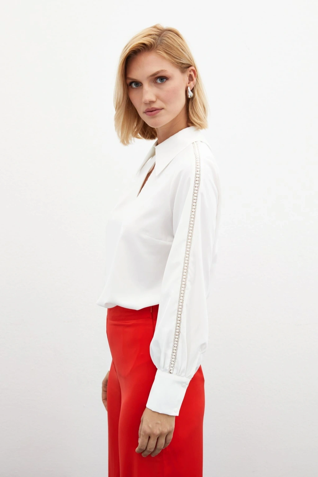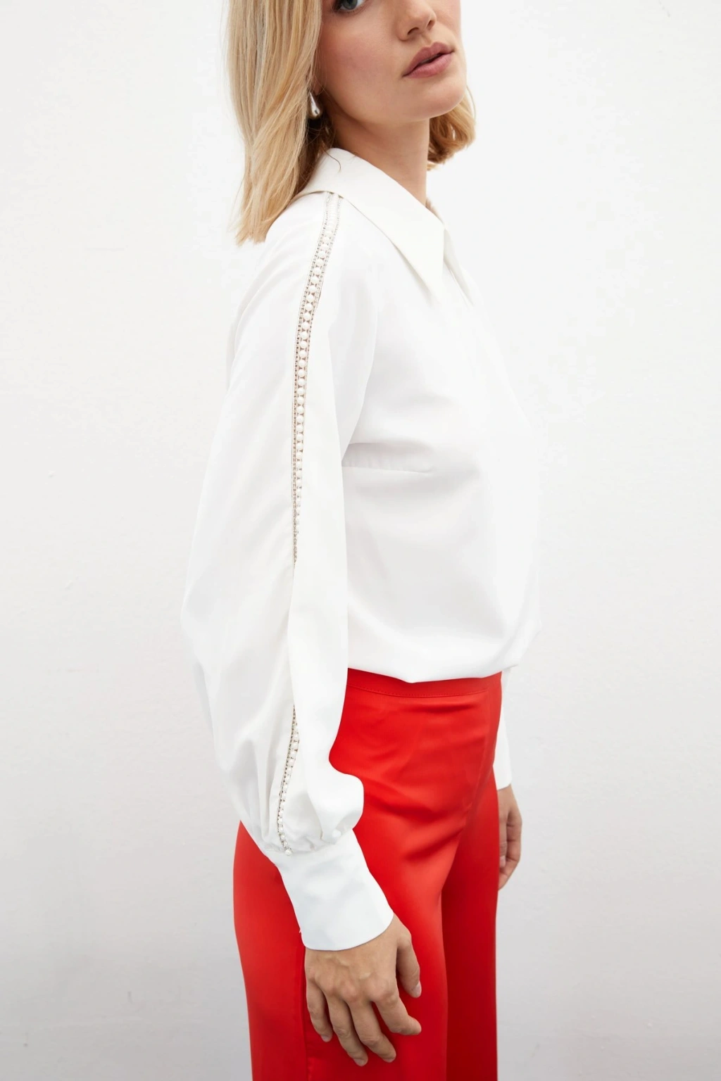Kolları İnci Detaylı Bluz - Ekru