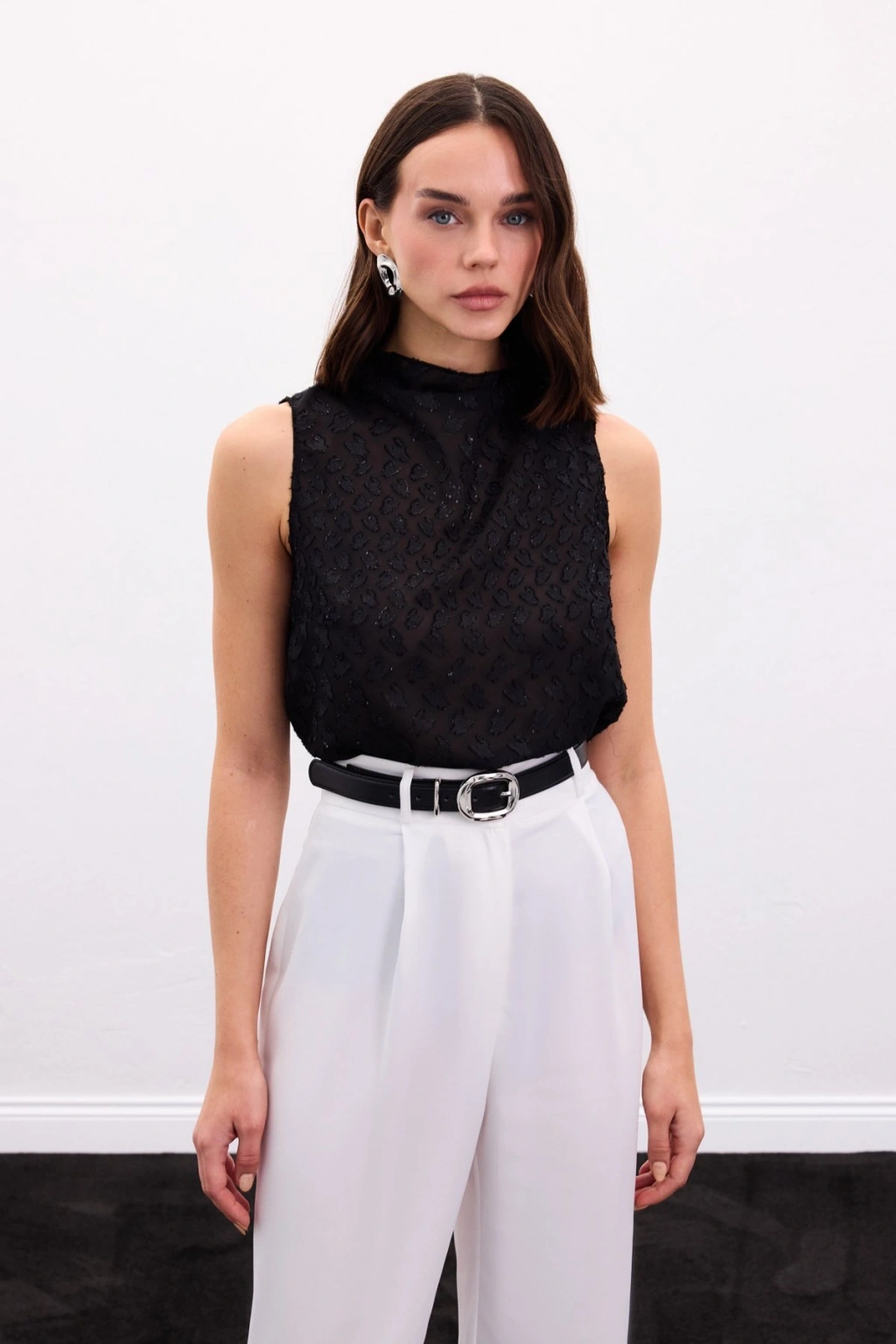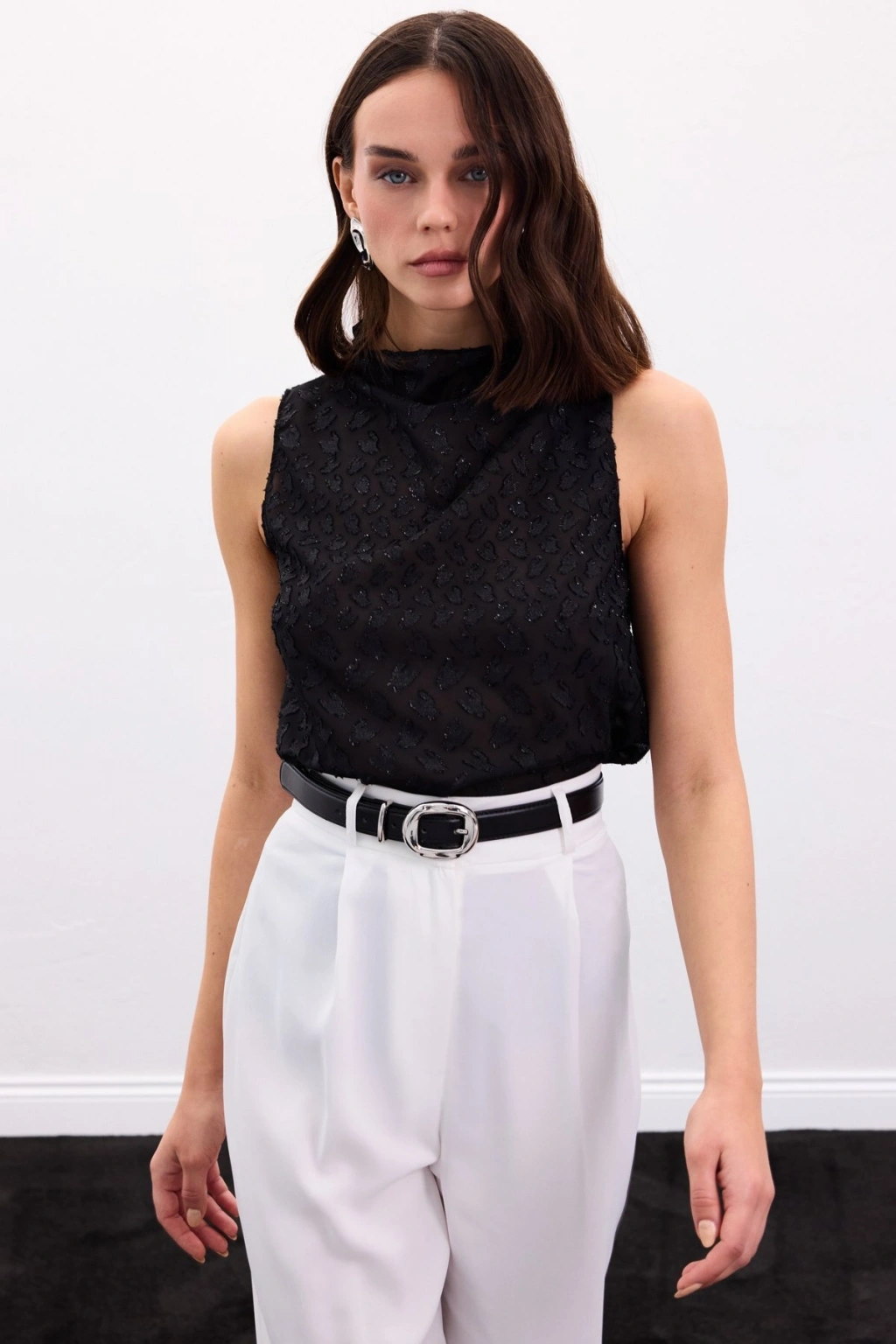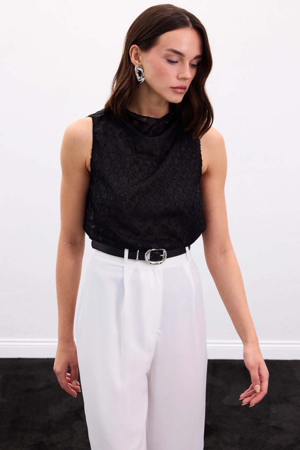Aksesuar Kuşaklı Kolsuz Bluz - Siyah