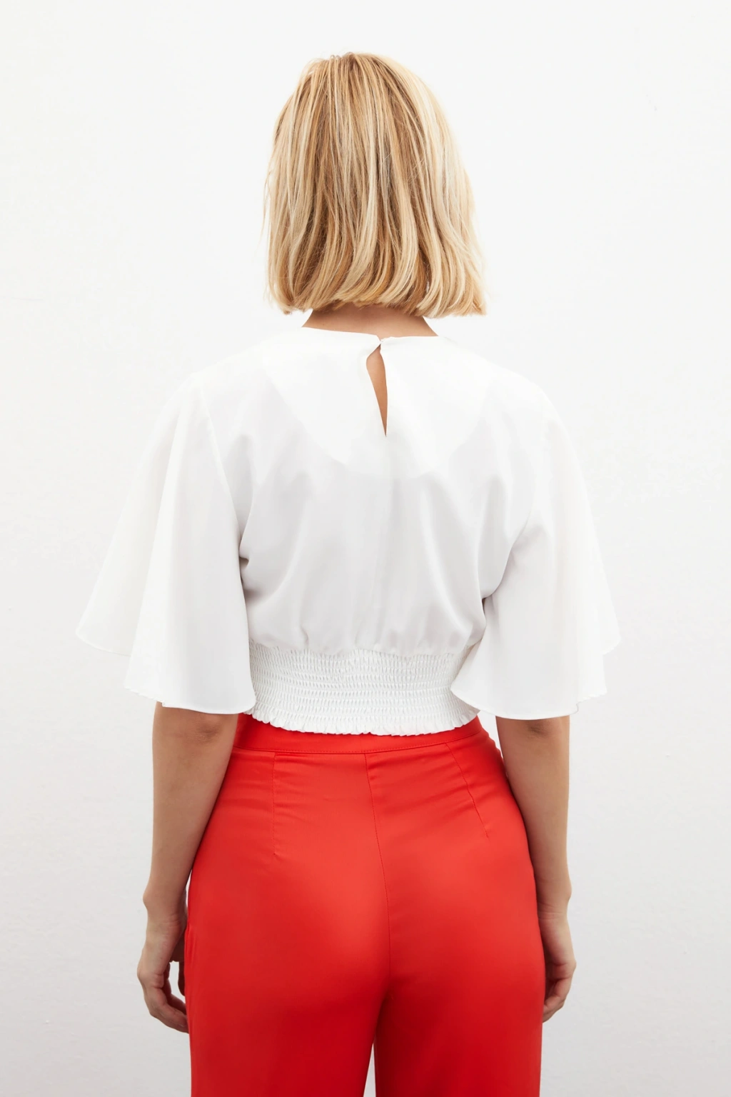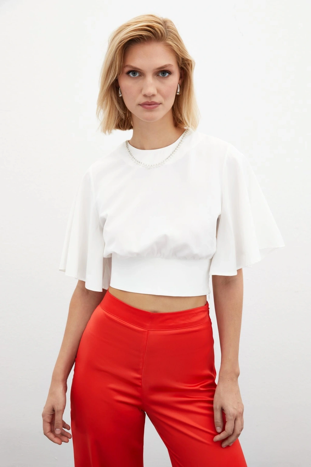 Kolyeli Kısa Kol Bluz - Ekru