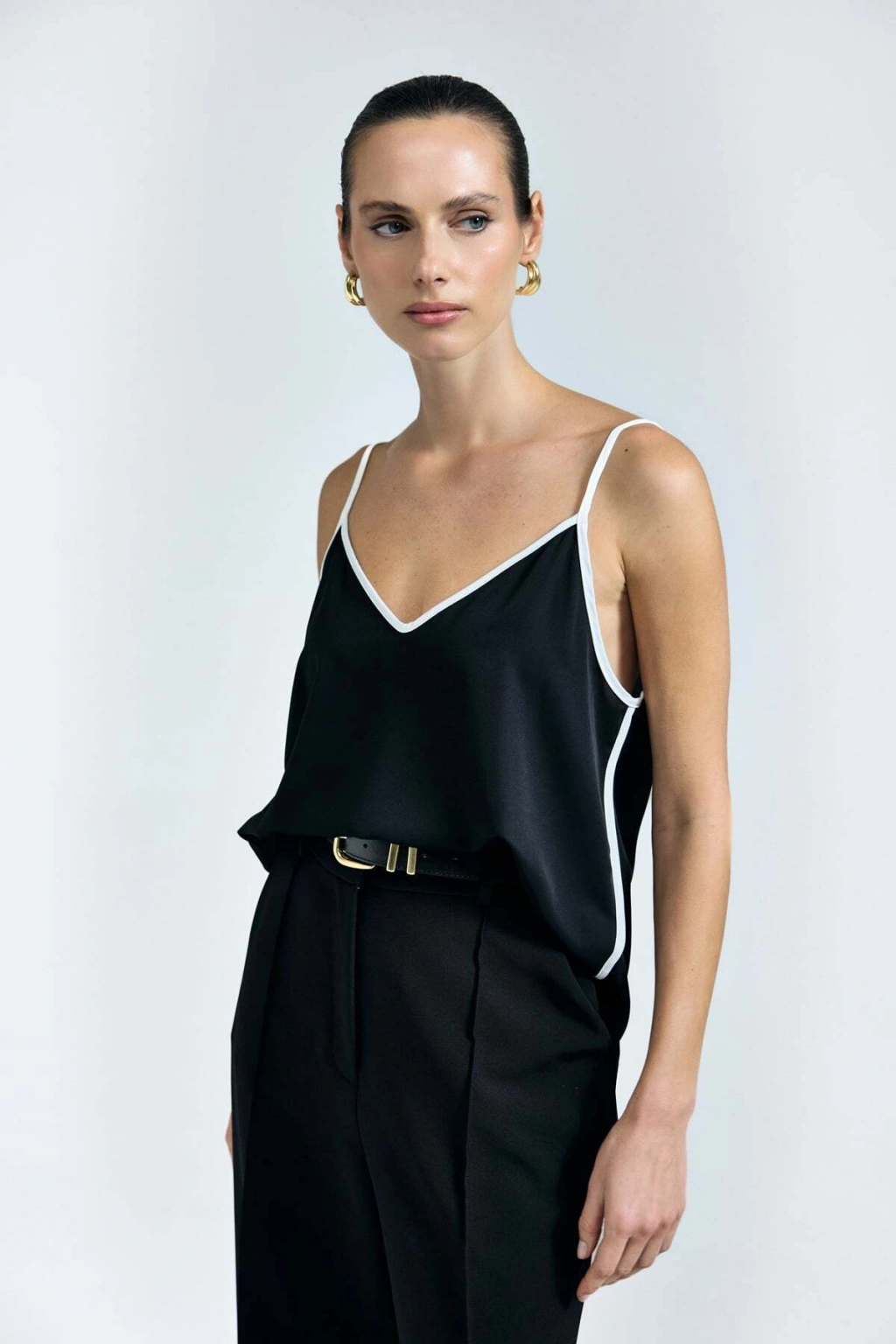 Boğazlı Kolsuz Bluz - Bej-Kahve