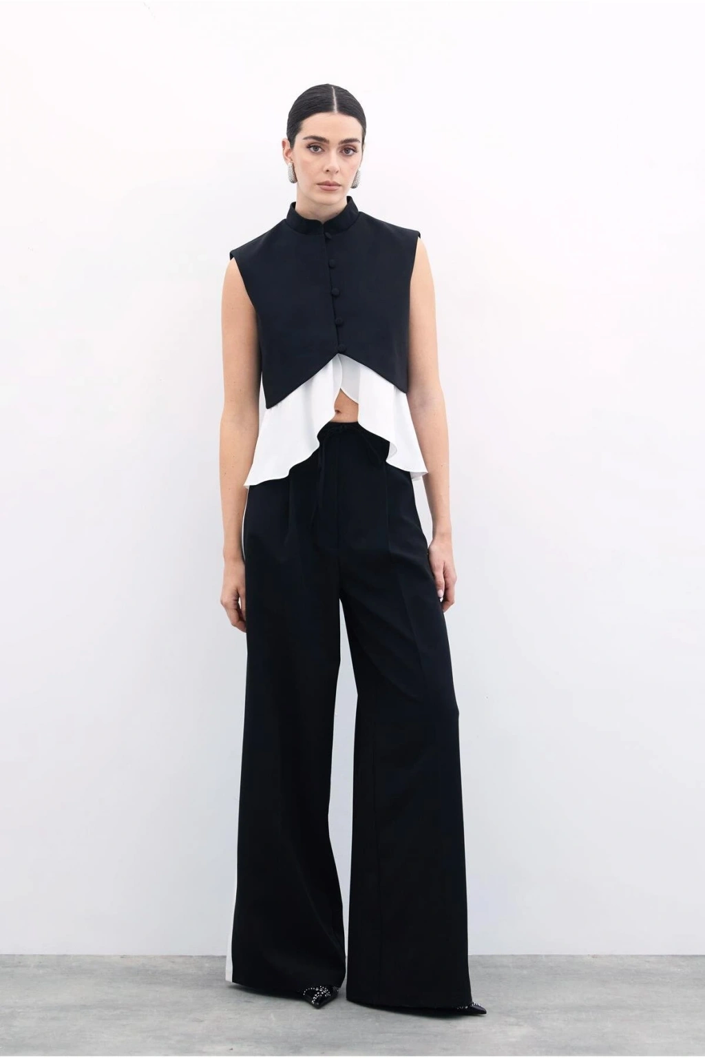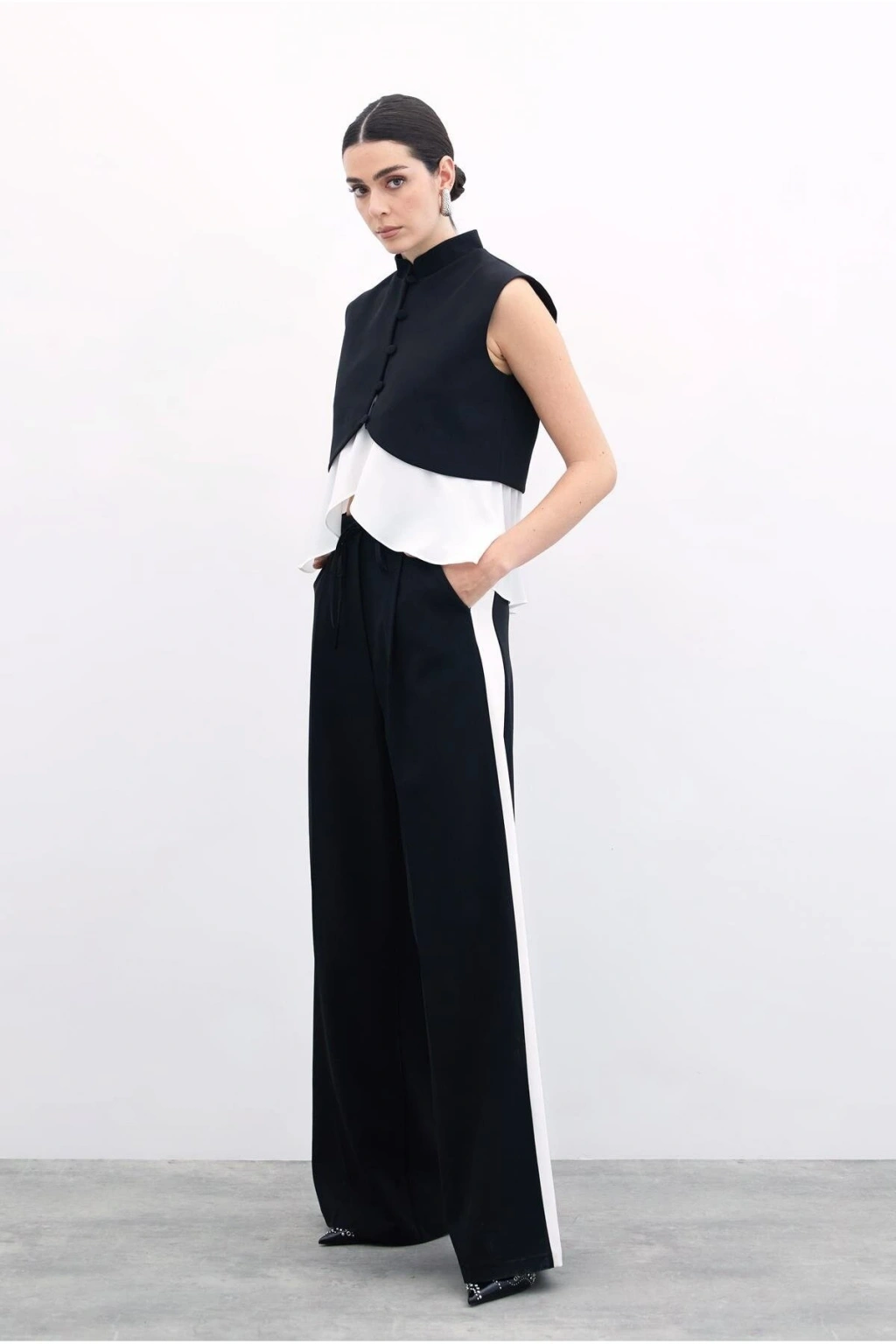 Kontrast Bol Pantolon - Siyah