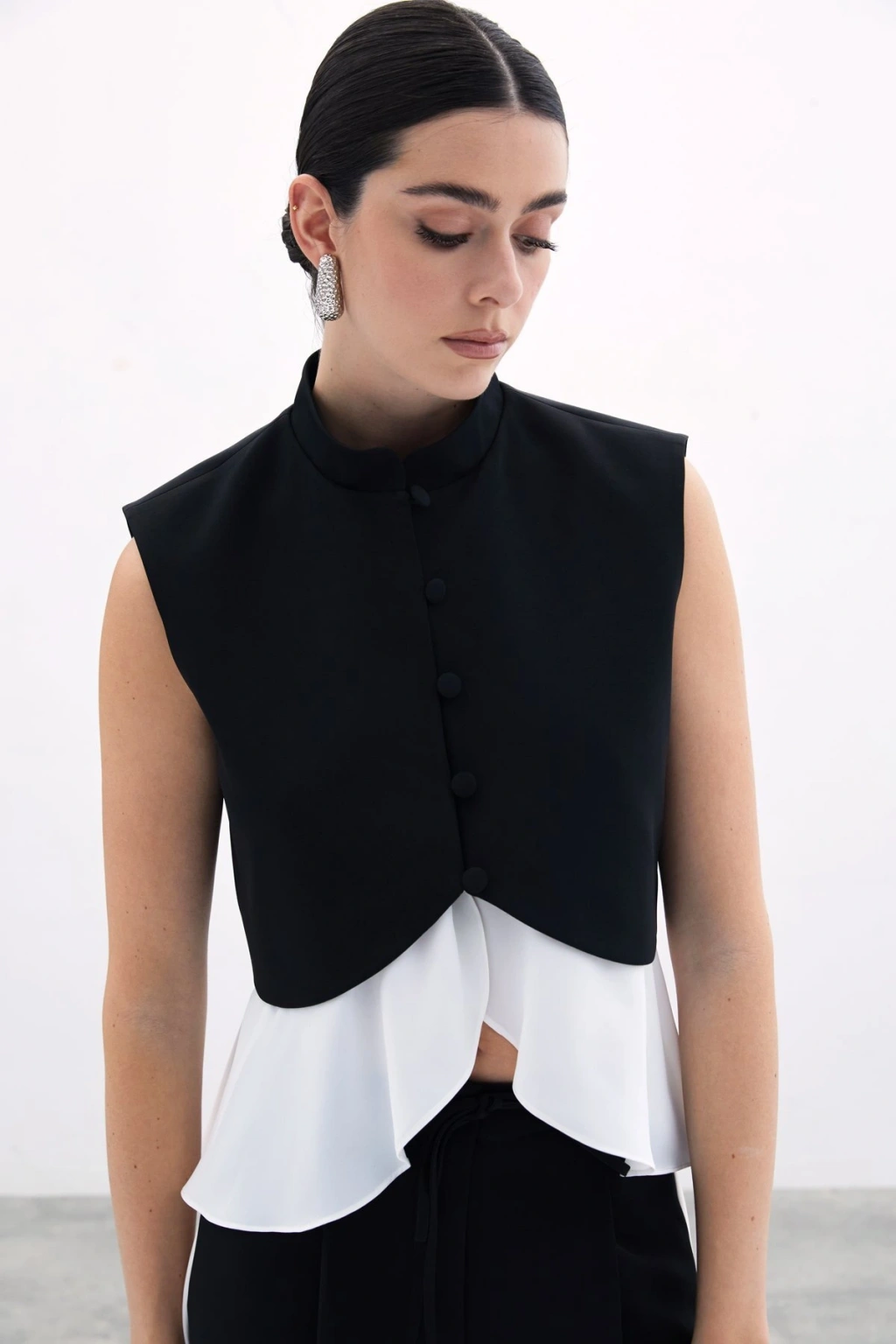 Yan Aksesuarlı Uzun Yelek - Ekru