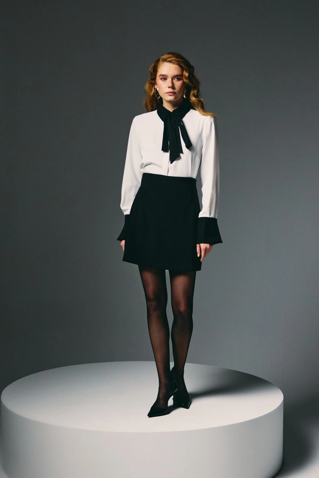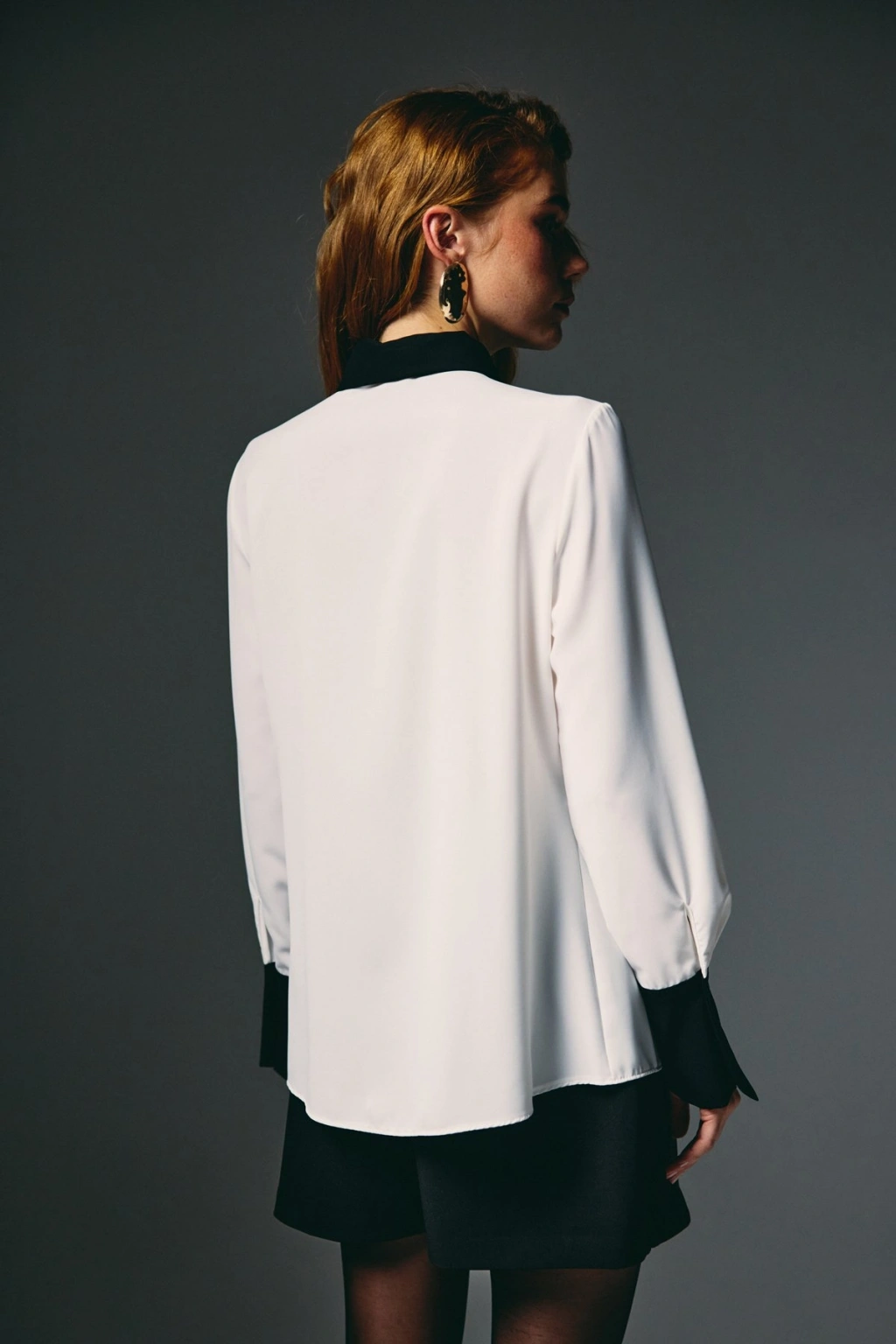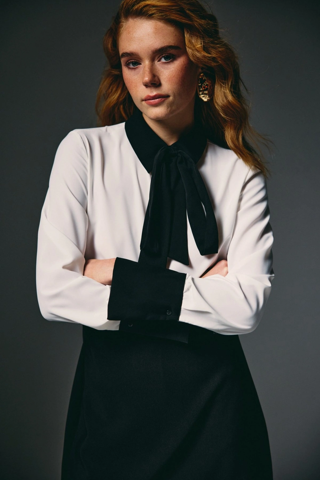 Çiçek Desenli Fularlı Gömlek - Pudra