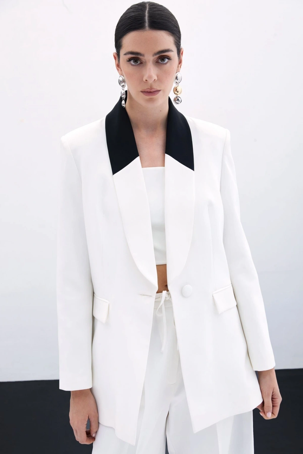 Kontrast Salaş Ceket - Ekru