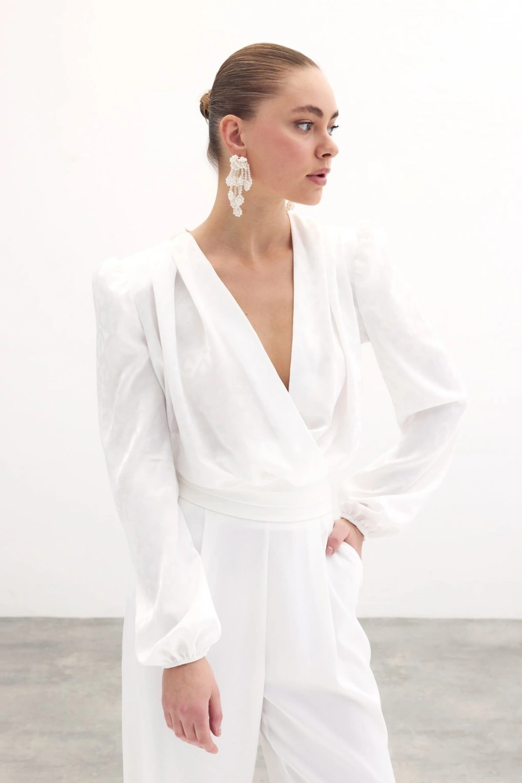 Aksesuarlı Salaş Bluz - Ekru