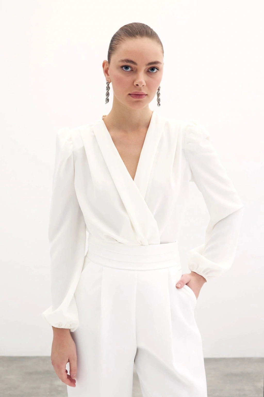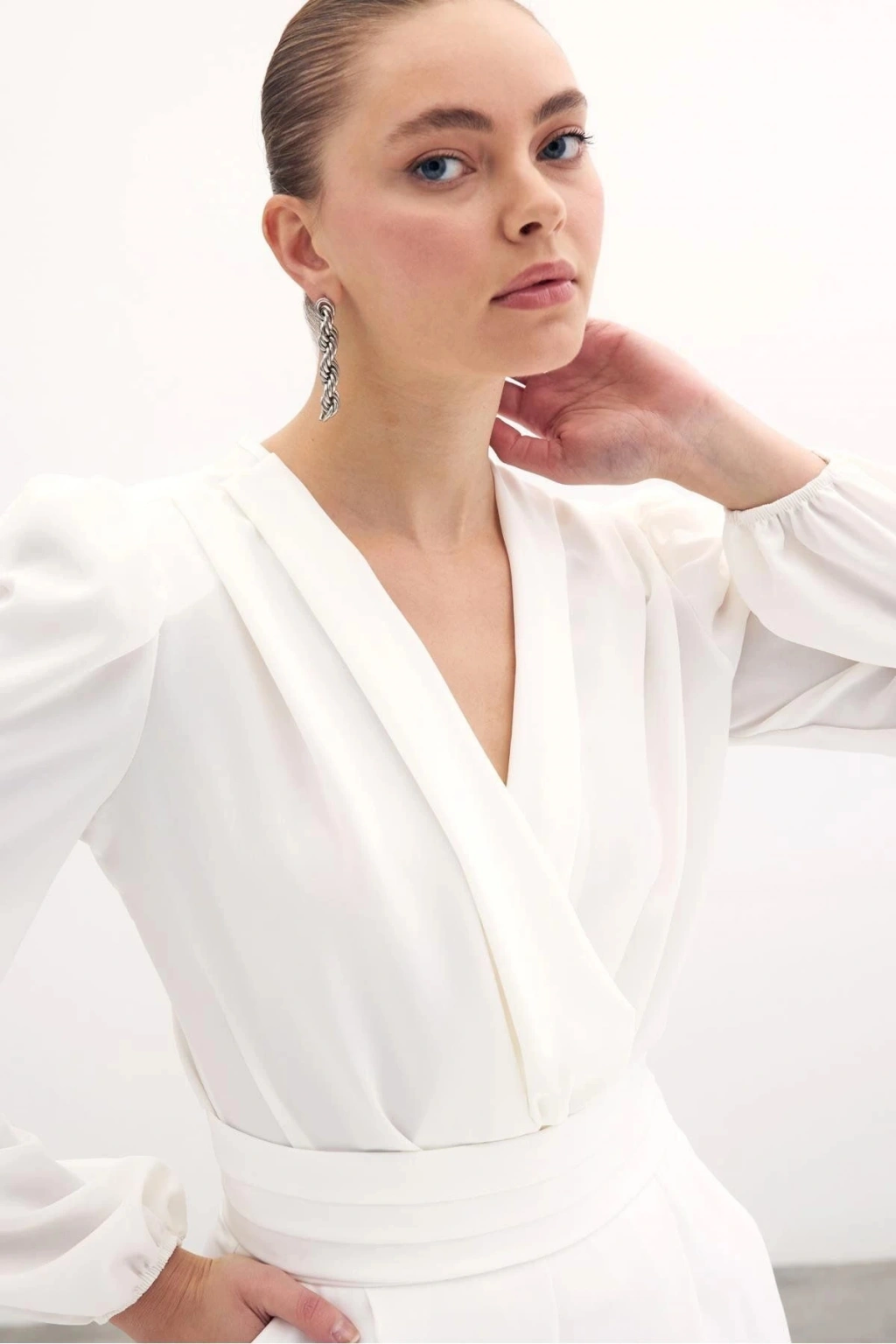 Kruvaze Desenli Bodysuit - BEBEMAVİ EKRU