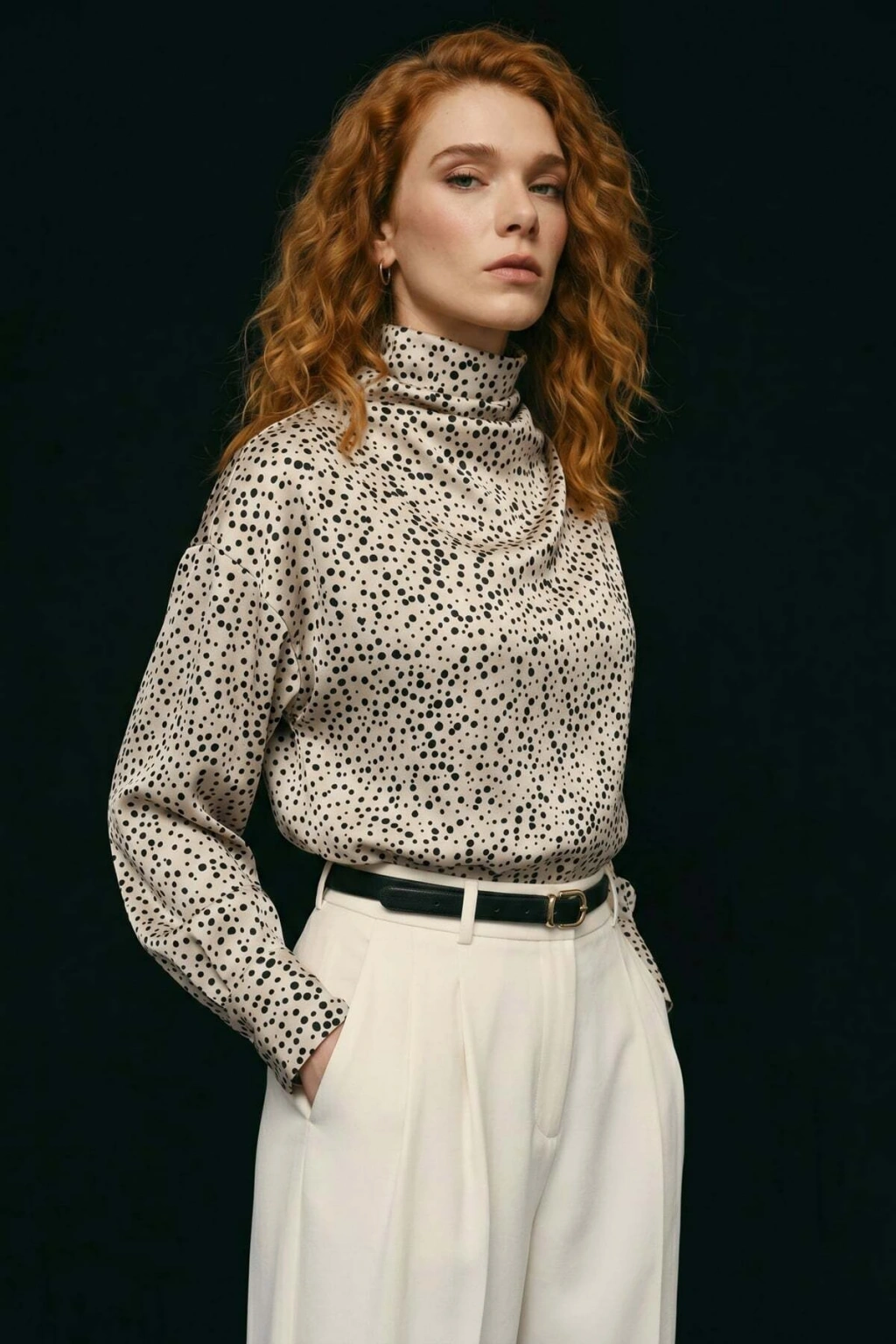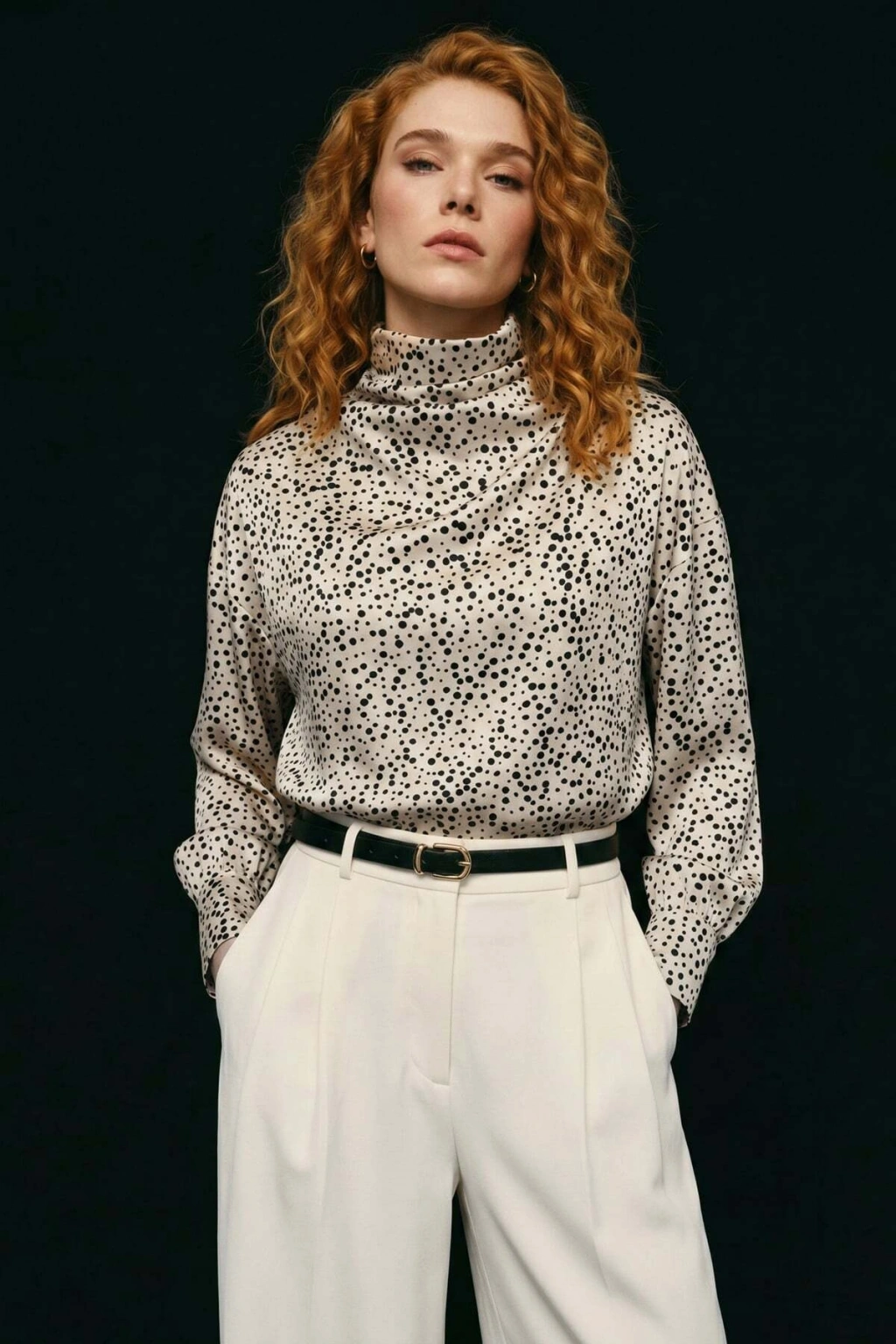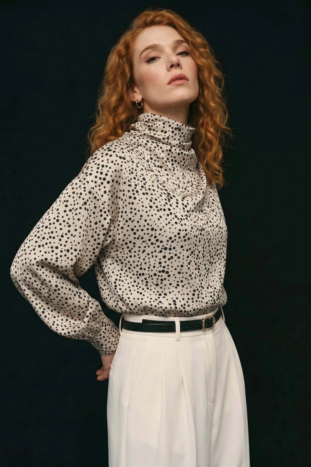 Yarasa Kol Salaş Bluz - Puanlı Kahve