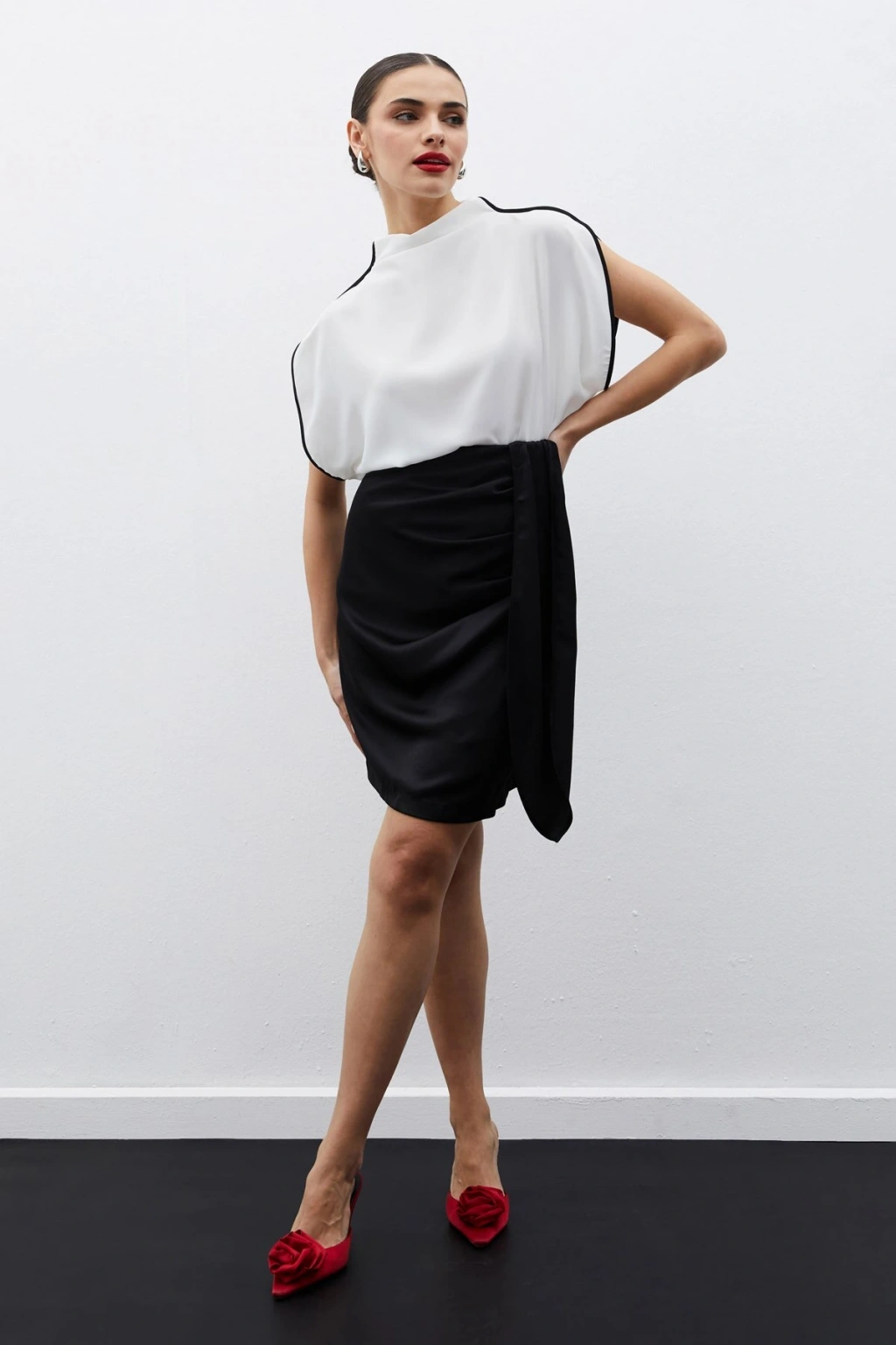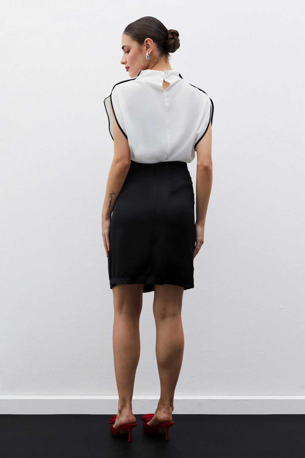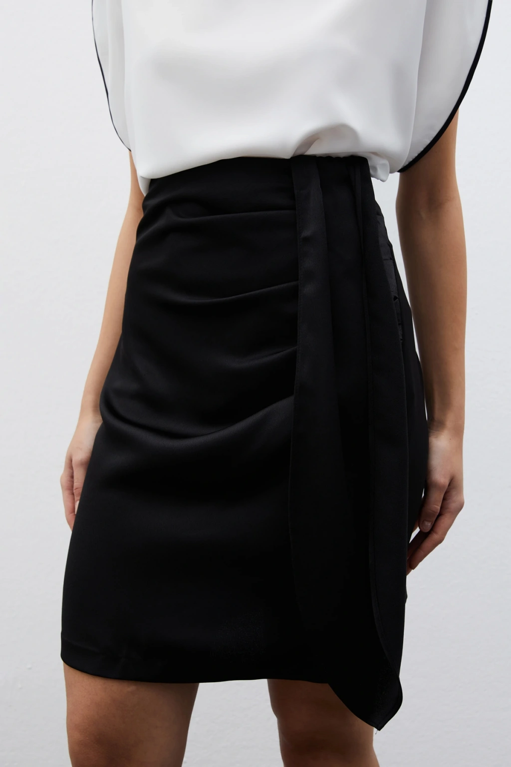 Kruvaze Süs Cepli Kısa Etek - Siyah