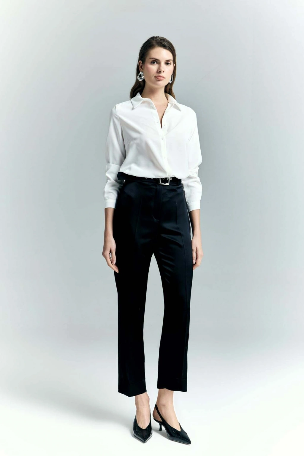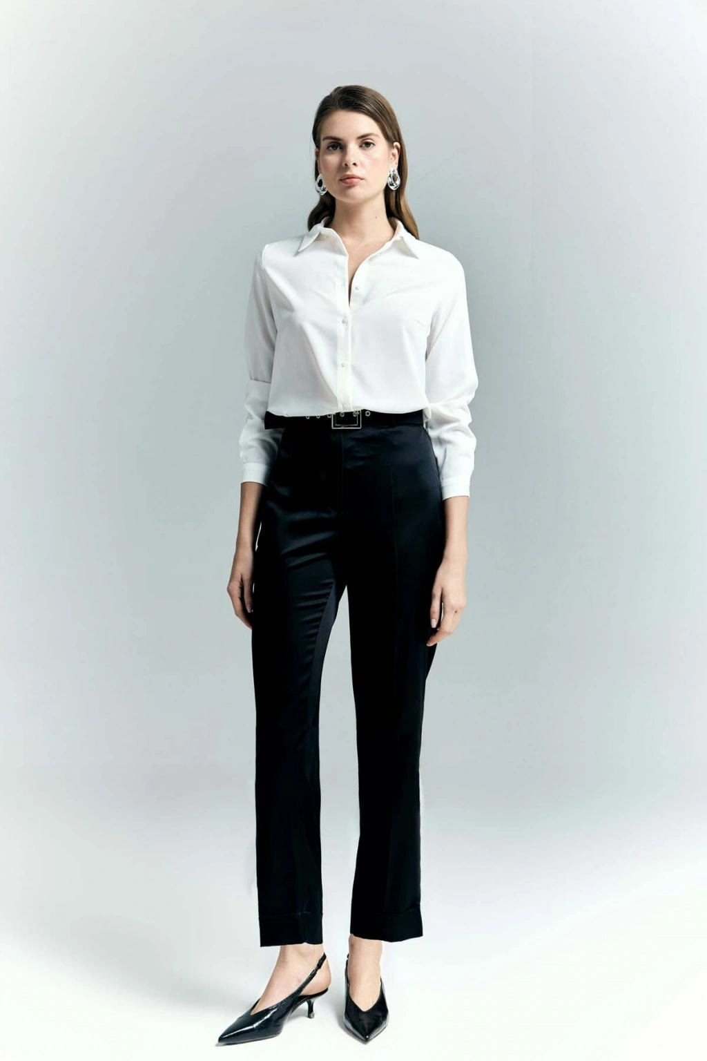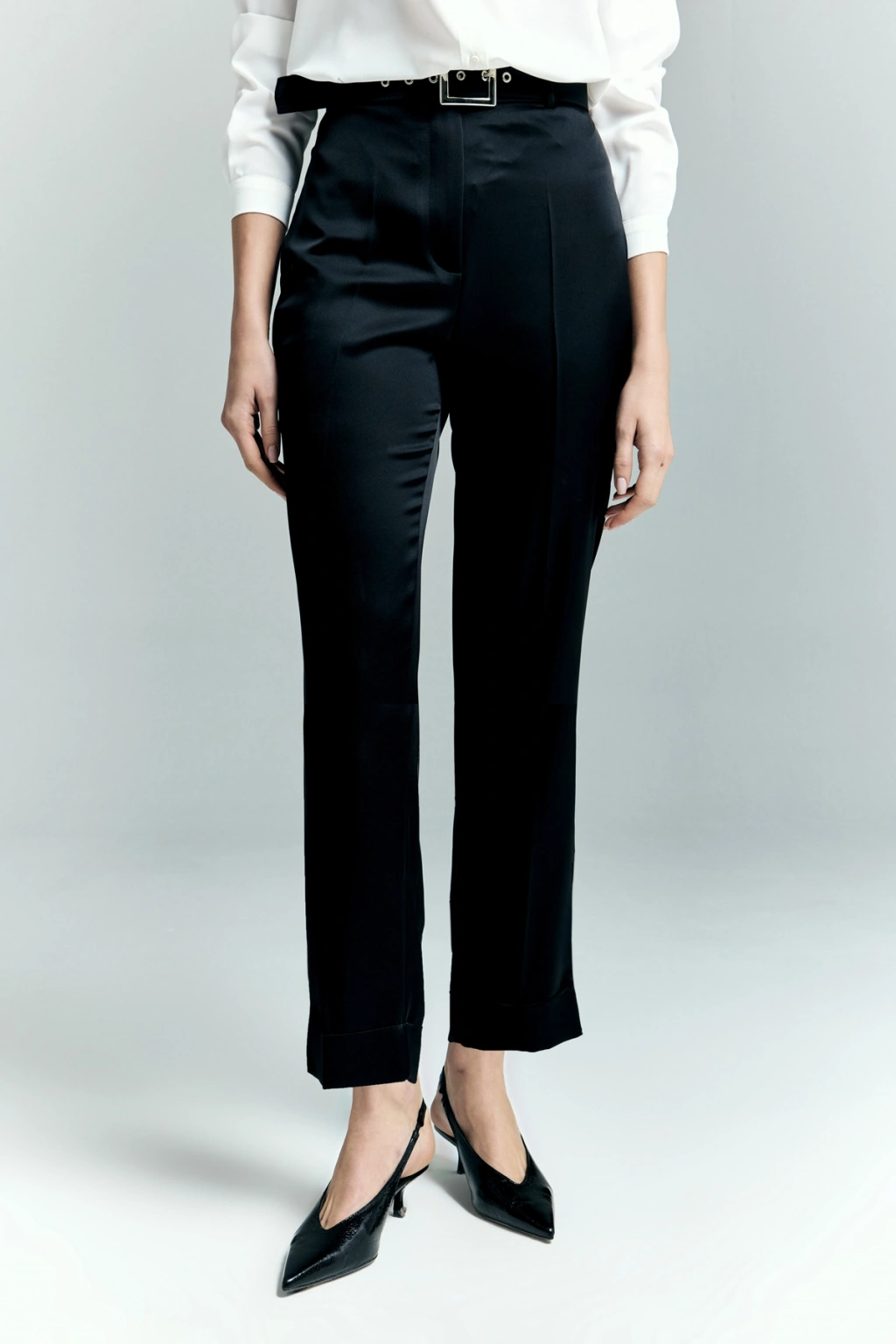 Lisa Saten Duble Paça Pantolon - Siyah
