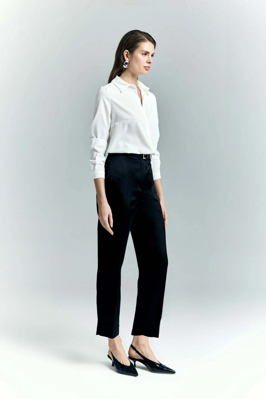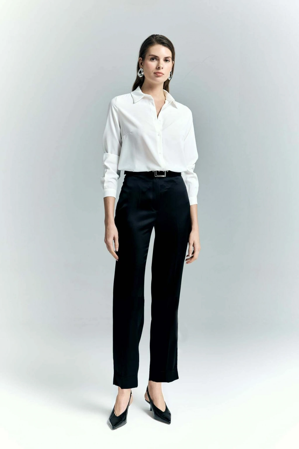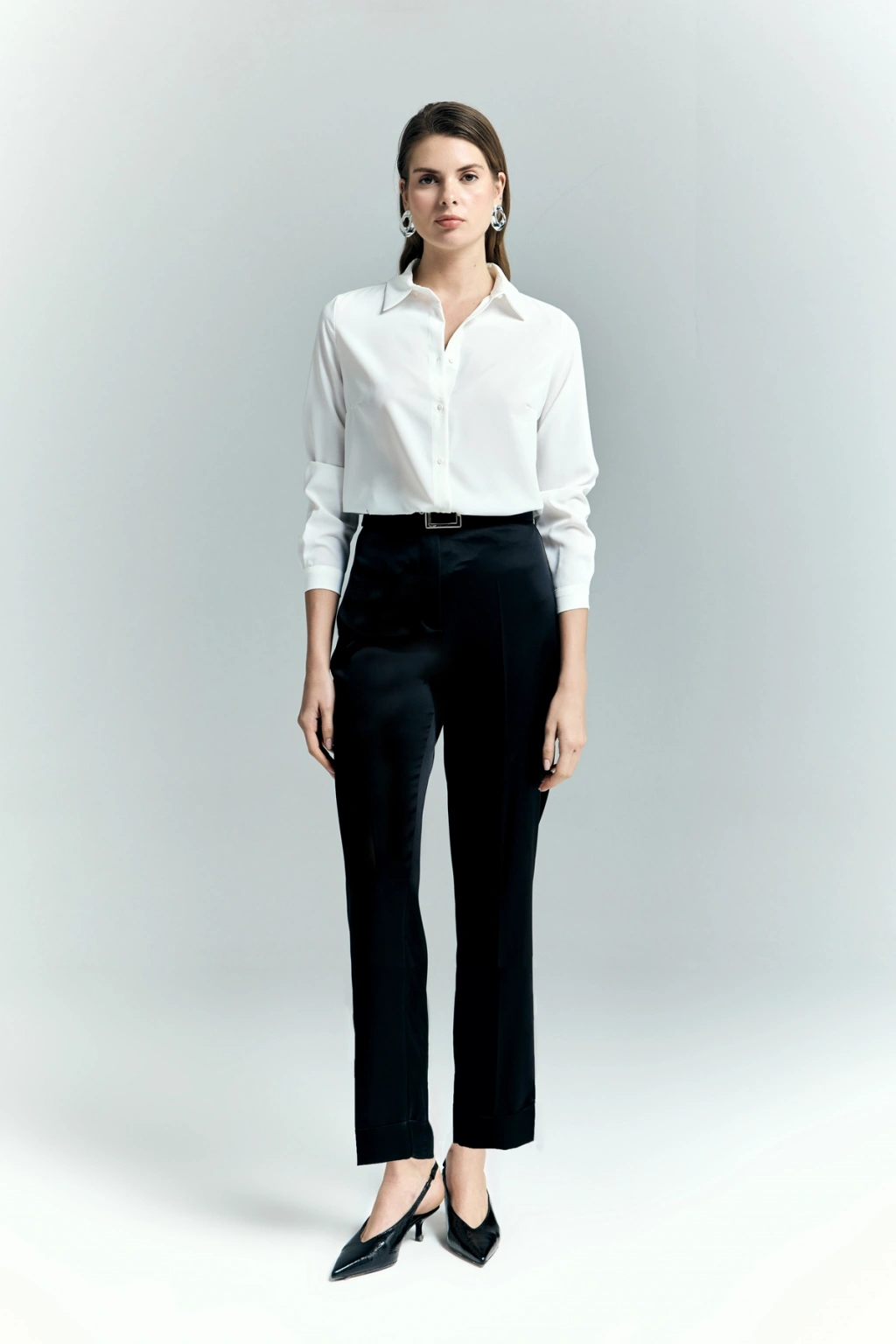 Lisa Saten Duble Paça Pantolon - Siyah