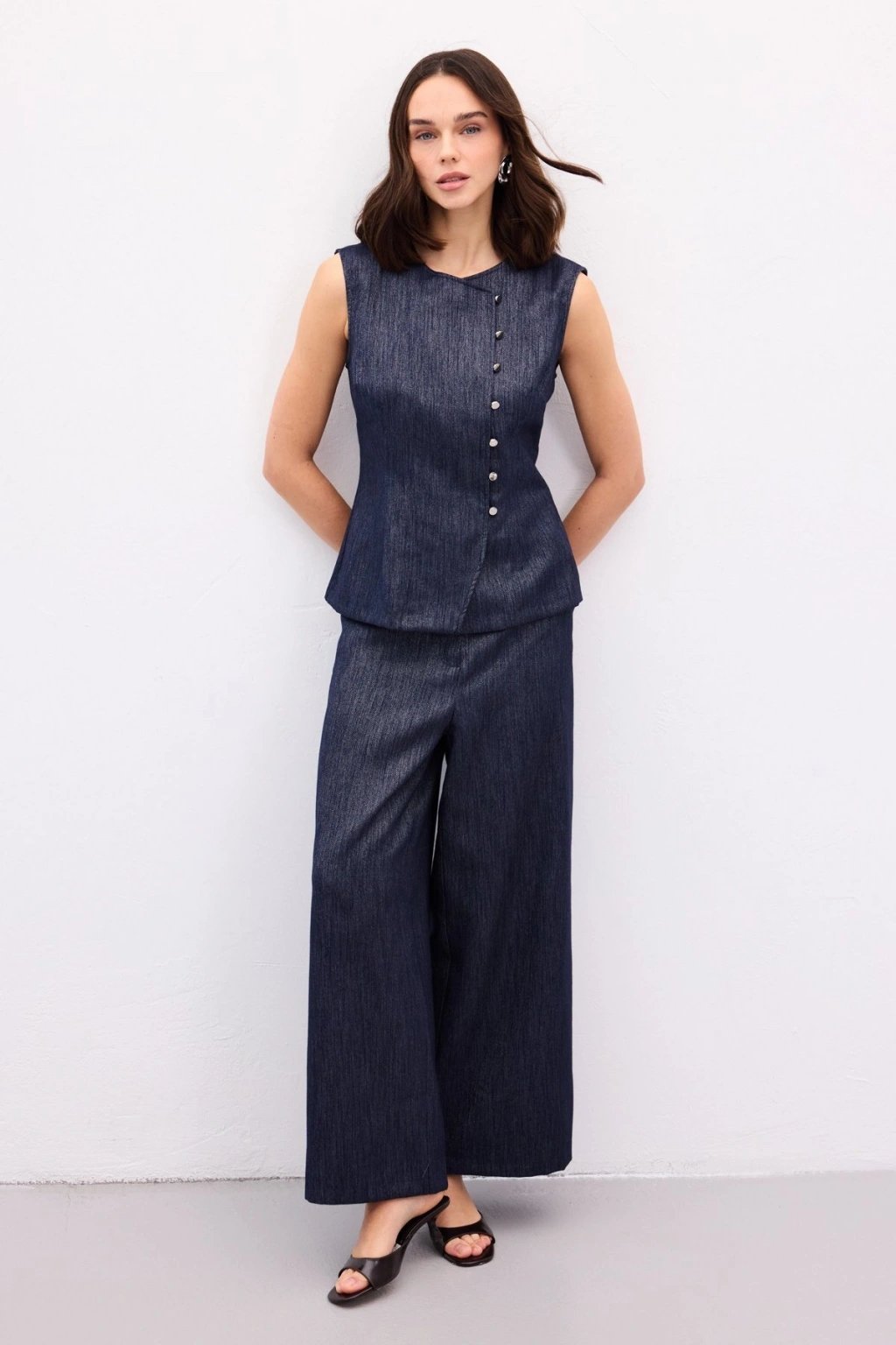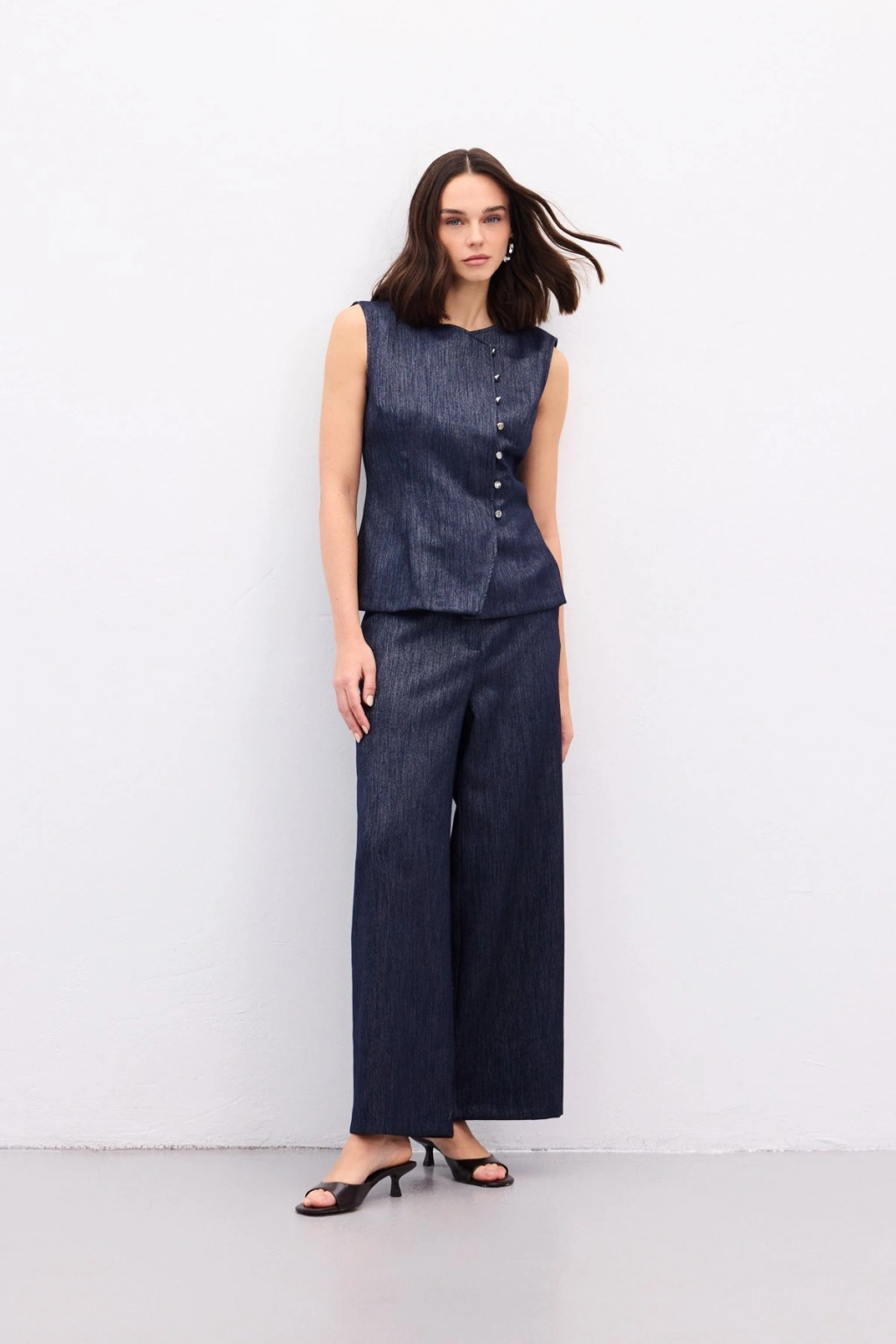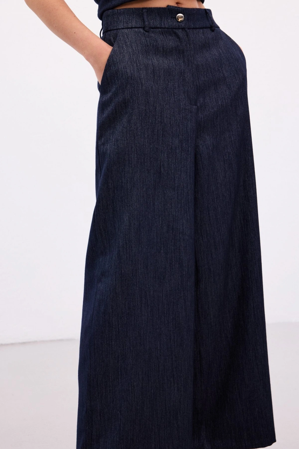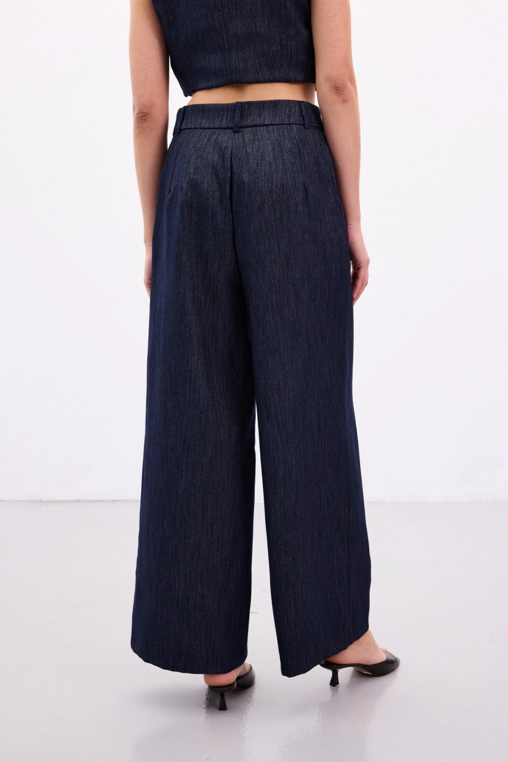 Pileli Saten Krep Pantolon - İndigo