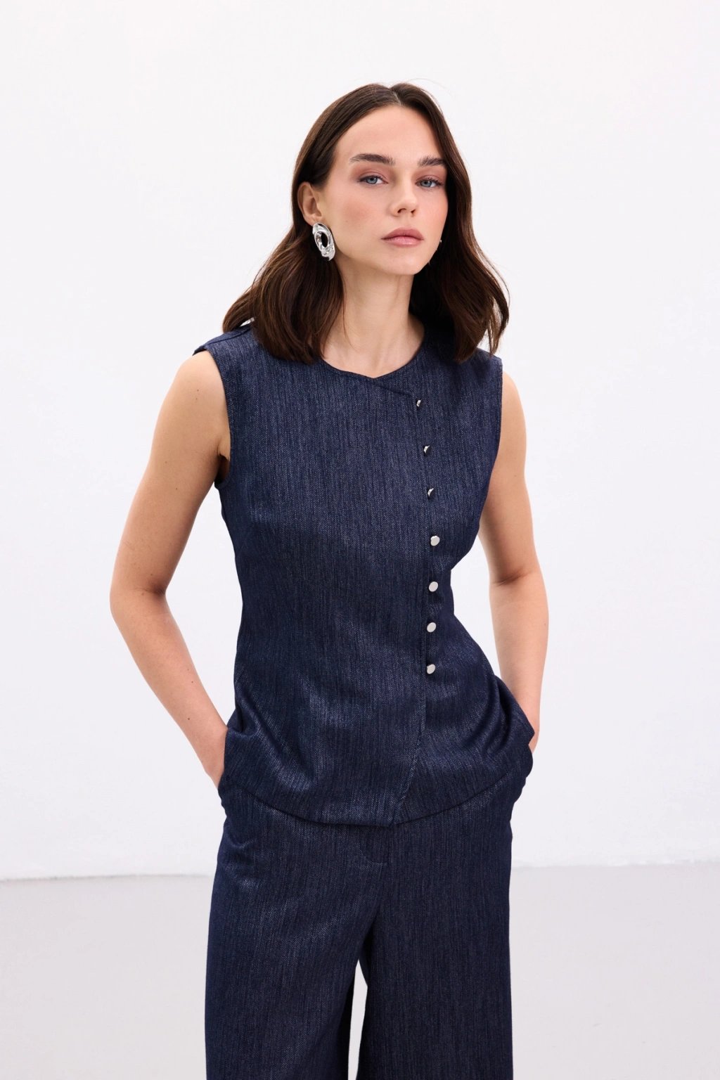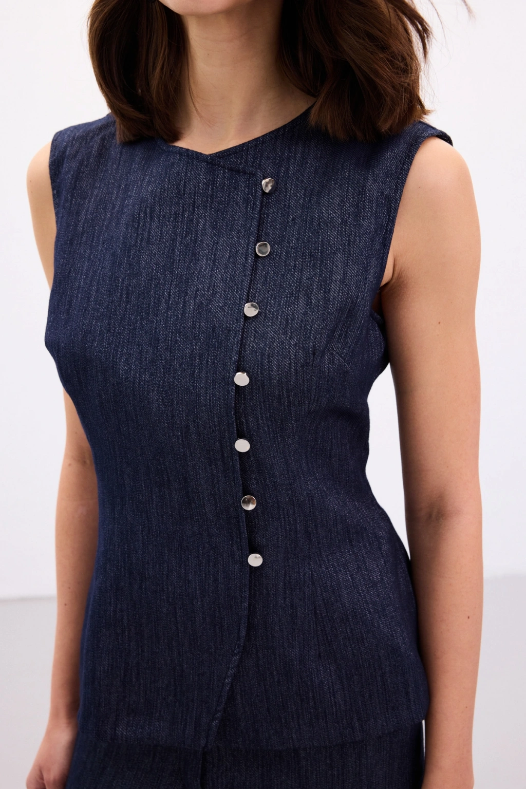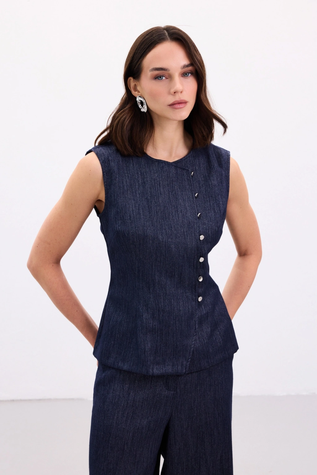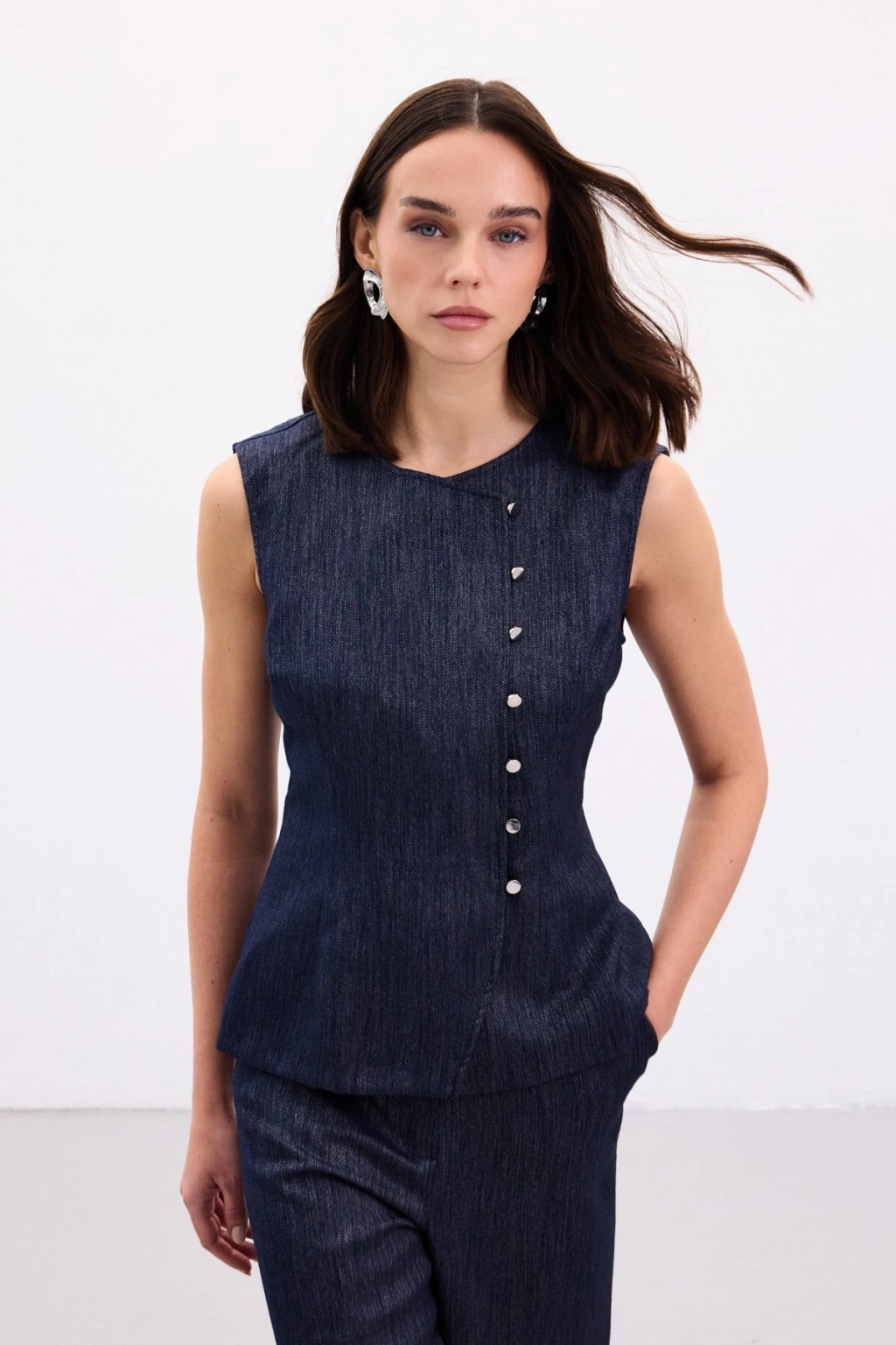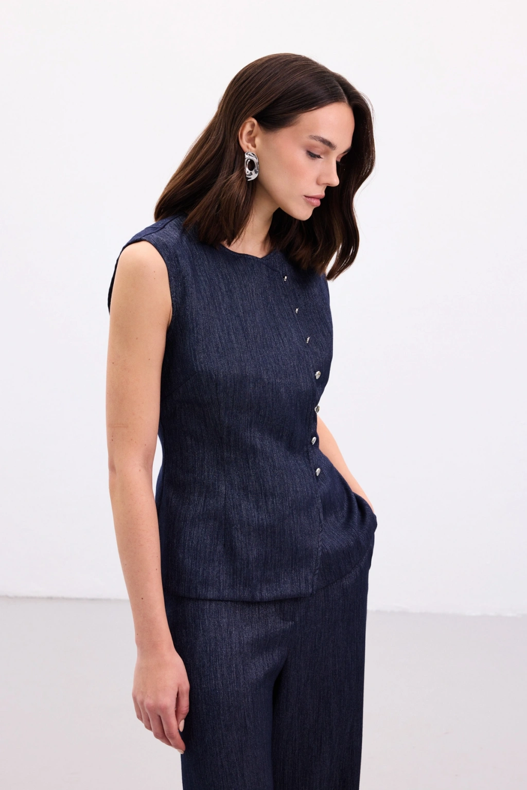 Düğmeli V Kesim Kolsuz Yelek Pembe