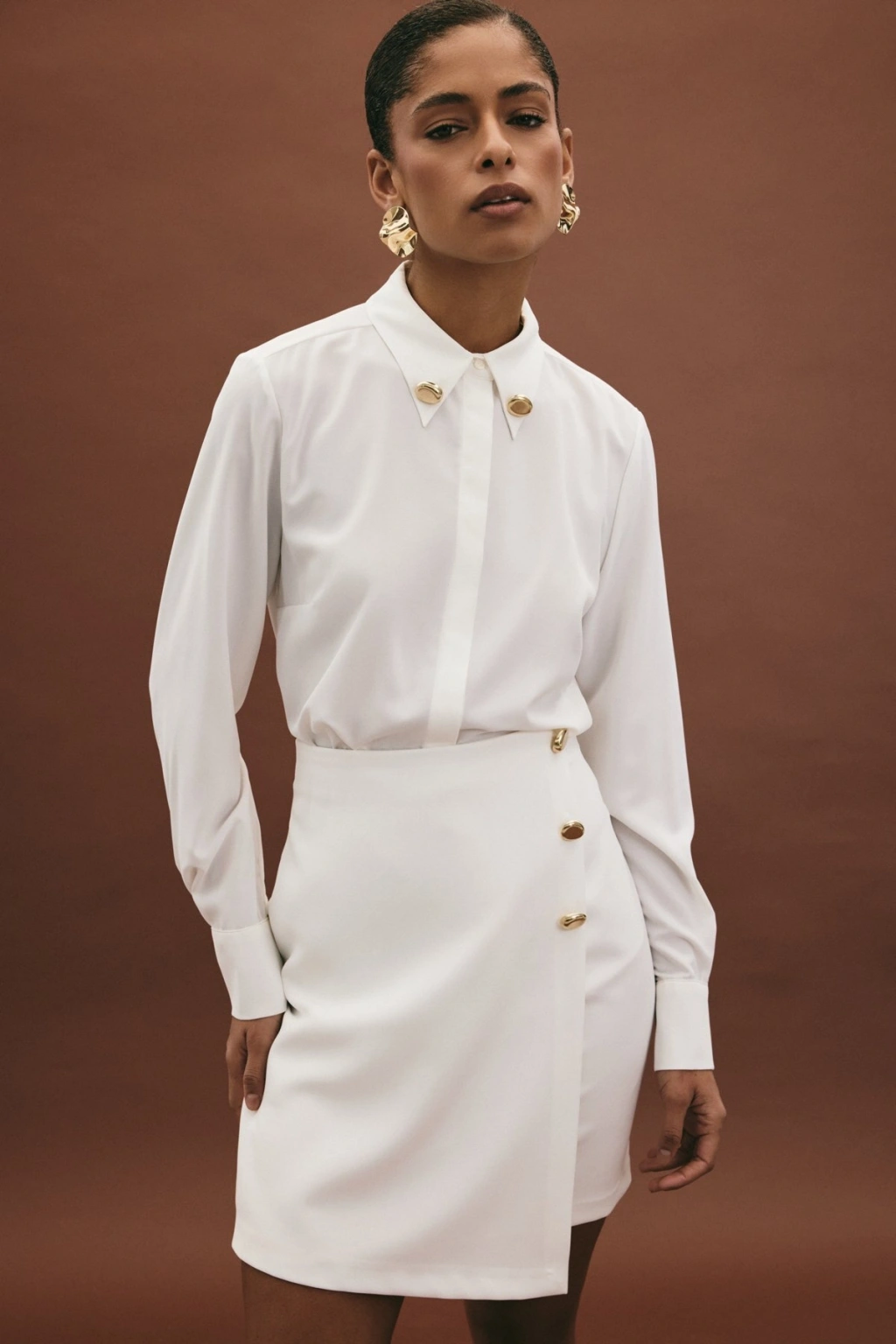 Gold Yan Aksesuarlı Etek - Ekru